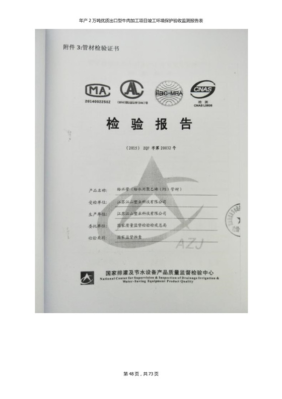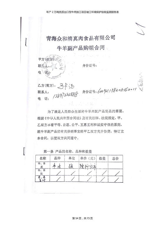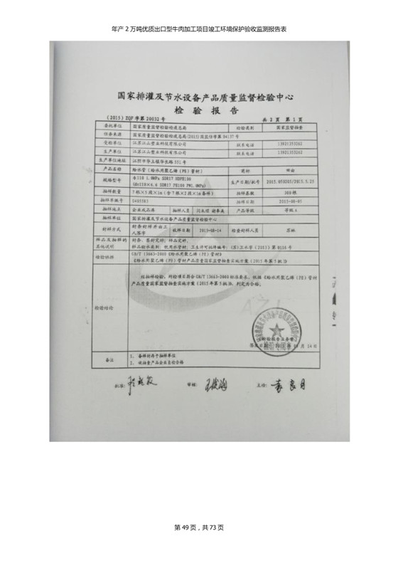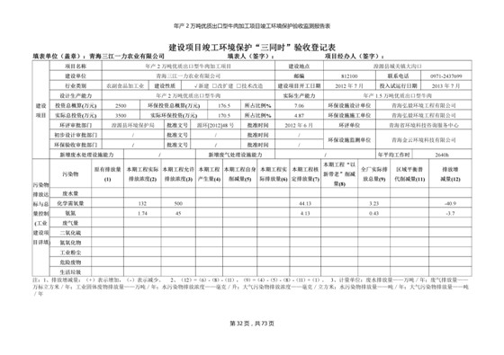 根據(jù)中華人民共和國國務(wù)院令第253號《建設(shè)項(xiàng)目環(huán)境保護(hù)管理?xiàng)l例》(中華人民共和國國務(wù)院令第682號《國務(wù)院關(guān)于修改〈建設(shè)項(xiàng)目環(huán)境保護(hù)管理?xiàng)l例〉的決定》和《建設(shè)項(xiàng)目竣工環(huán)境保護(hù)驗(yàn)收暫行辦法》,嚴(yán)格依照有關(guān)法律法規(guī),建設(shè)項(xiàng)目環(huán)境保護(hù)設(shè)施驗(yàn)收技術(shù)規(guī)范,本項(xiàng)目環(huán)評報(bào)告表和環(huán)保審批部門審批意見以及企業(yè)自行驗(yàn)收相關(guān)要求等對本項(xiàng)目進(jìn)行驗(yàn)收,本項(xiàng)目符合環(huán)保驗(yàn)收條件,可以通過環(huán)保驗(yàn)收。 青海三江一力農(nóng)業(yè)有限公司組織召開年產(chǎn)2萬噸優(yōu)質(zhì)出口型牛肉加工項(xiàng)目(一期工程)驗(yàn)收組意見.
