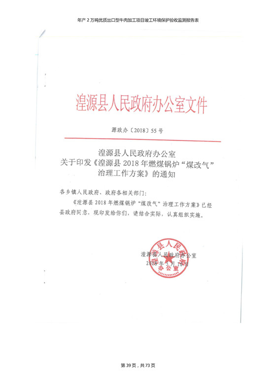 2018年7月11日,青海三江一力農(nóng)業(yè)有限公司組織召開年產(chǎn)2萬噸優(yōu)質(zhì)出口型牛肉加工項(xiàng)目竣工環(huán)境保護(hù)驗(yàn)收會(huì)。