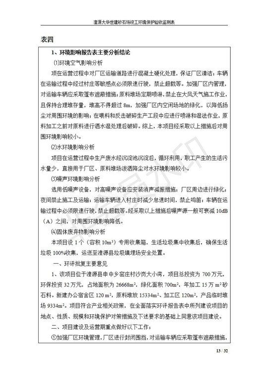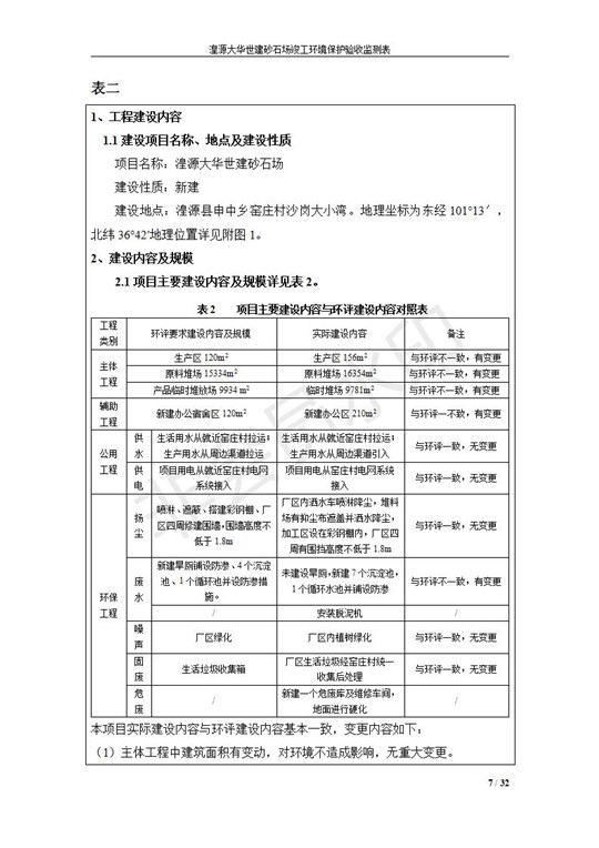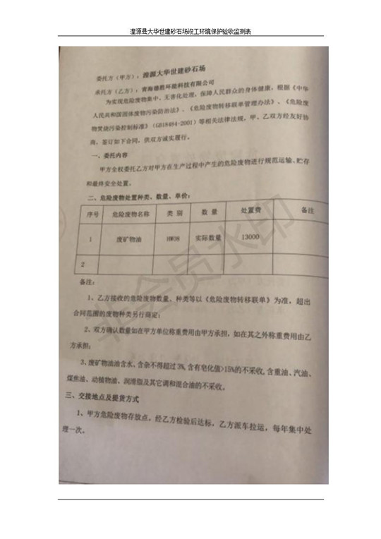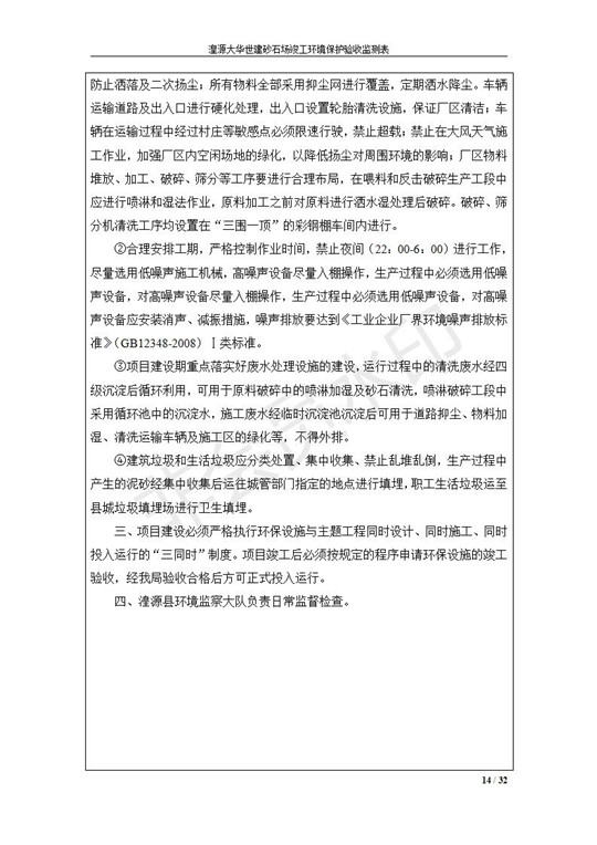 根據(jù)中華人民共和國國務(wù)院令第253號《建設(shè)項目環(huán)境保護(hù)管理條例》(中華人民共和國國務(wù)院令第682號《國務(wù)院關(guān)于修改〈建設(shè)項目環(huán)境保護(hù)管理條例〉的決定》和《建設(shè)項目竣工環(huán)境保護(hù)驗收暫行辦法》,嚴(yán)格依照有關(guān)法律法規(guī),建設(shè)項目環(huán)境保護(hù)設(shè)施驗收技術(shù)規(guī)范,本項目環(huán)評報告表和環(huán)保審批部門審批意見以及企業(yè)自行驗收相關(guān)要求等對本項目進(jìn)行驗收,本項目符合環(huán)保驗收條件,可以通過環(huán)保驗收。 湟源大華世建砂石場建設(shè)項目竣工環(huán)境保護(hù)驗收意見.