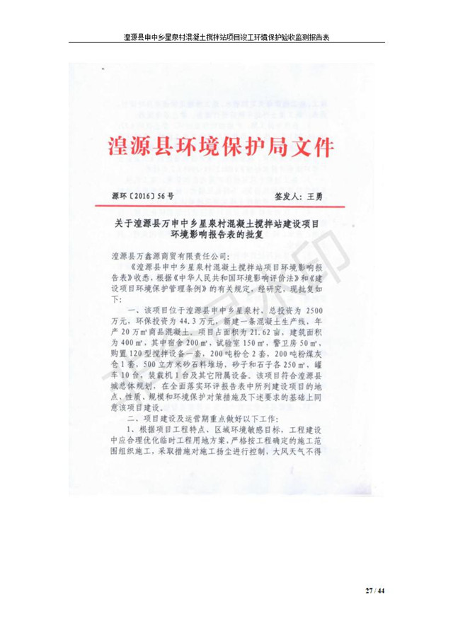 湟源縣申中鄉(xiāng)星泉村混凝土攪拌站項(xiàng)目竣工環(huán)境保護(hù)驗(yàn)收監(jiān)測(cè)報(bào)告表公示發(fā)布日期:(2018-11-16) 點(diǎn)擊次數(shù):2271 |