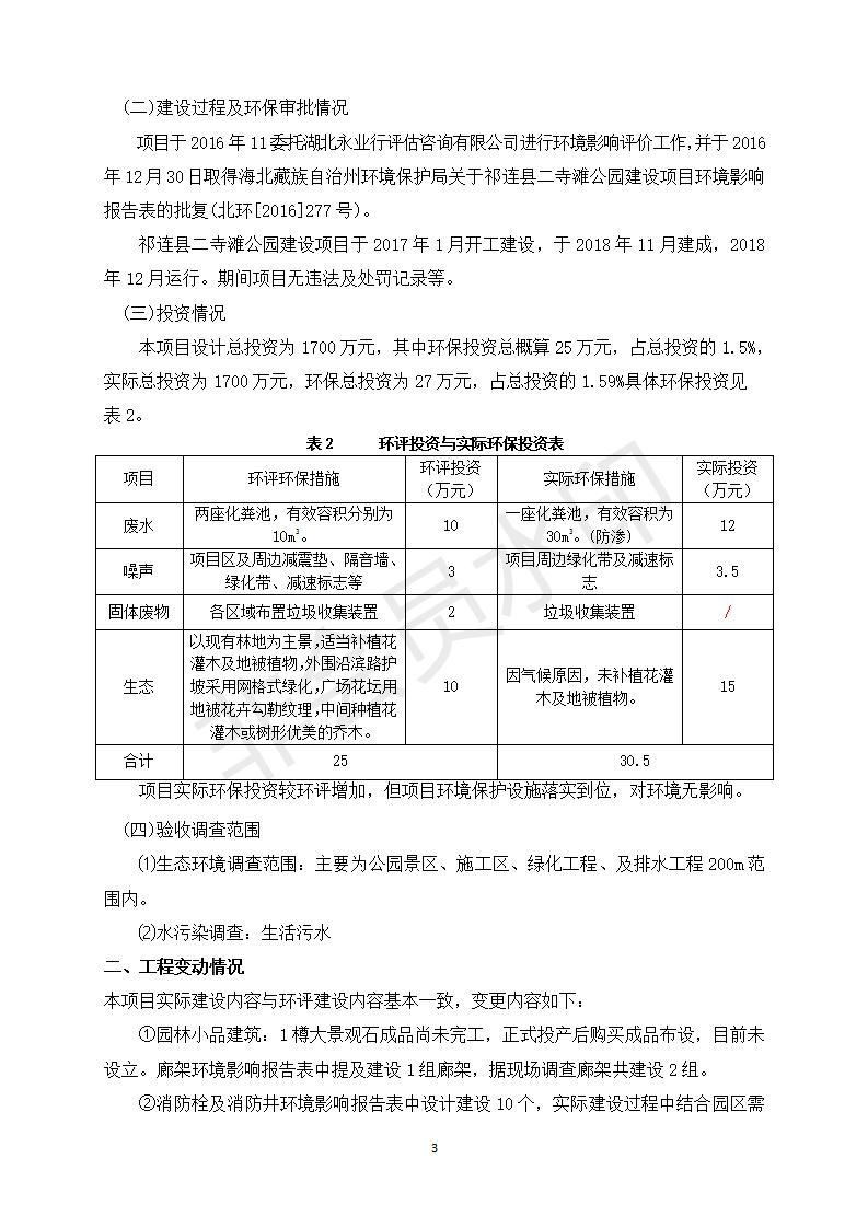 祁連縣二寺灘公園項目竣工環(huán)境保護驗收調(diào)查表公示