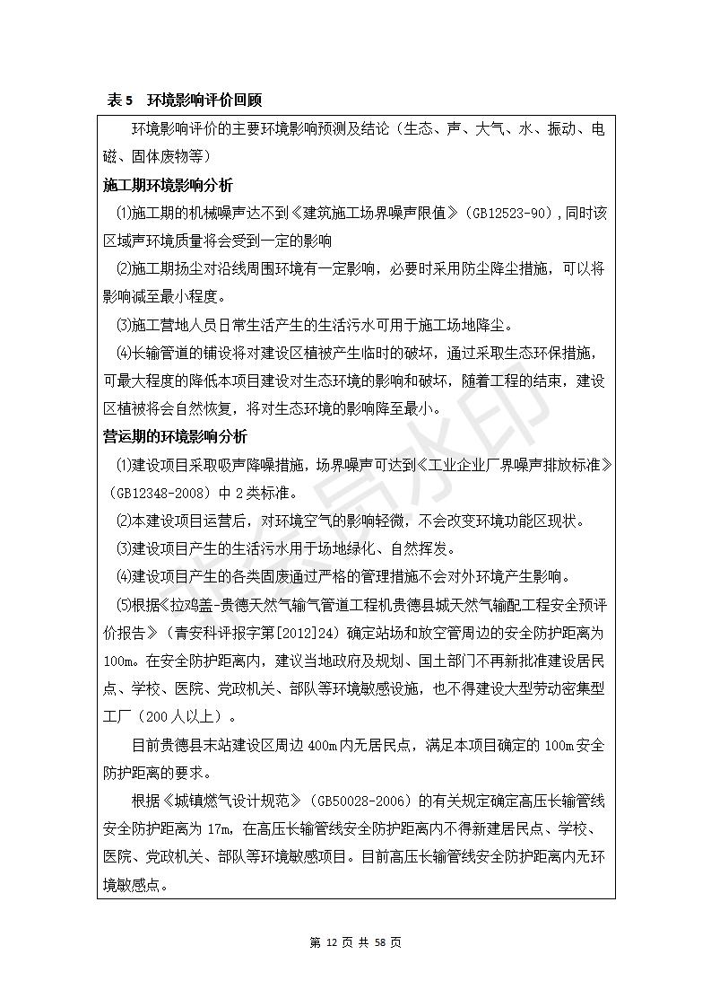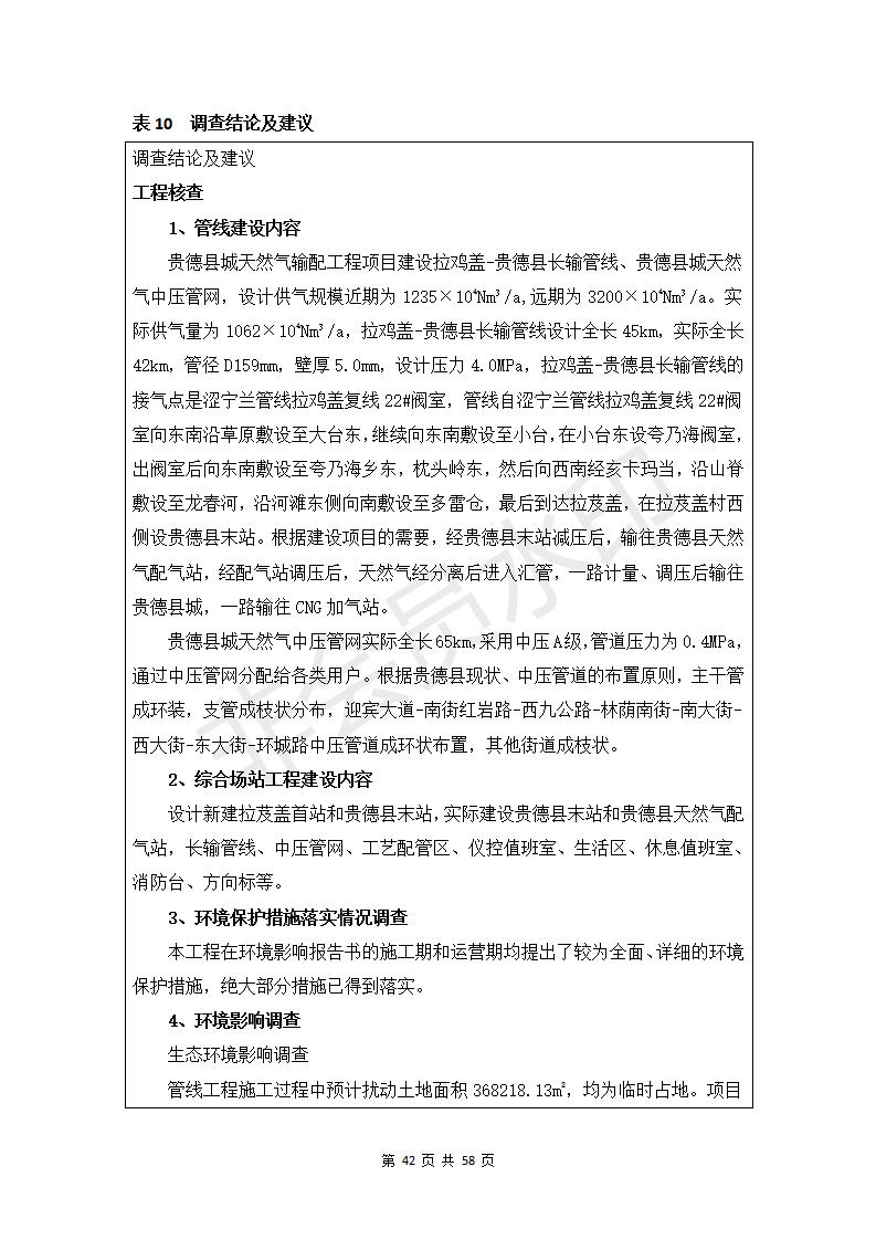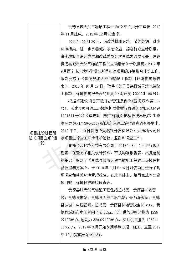 貴德縣城輸配管線工程竣工環(huán)境保護驗收調(diào)查表公示