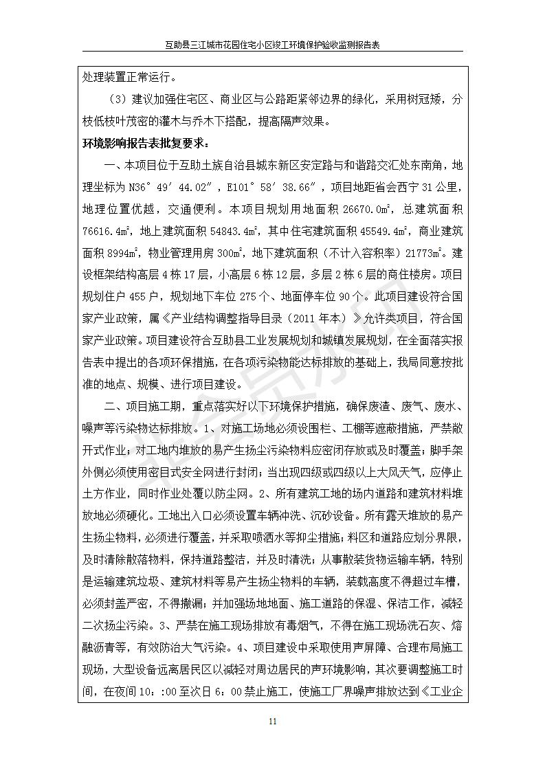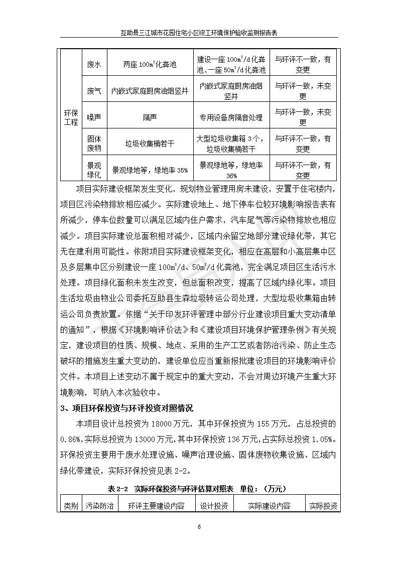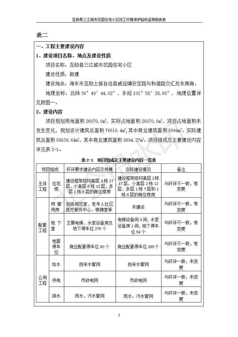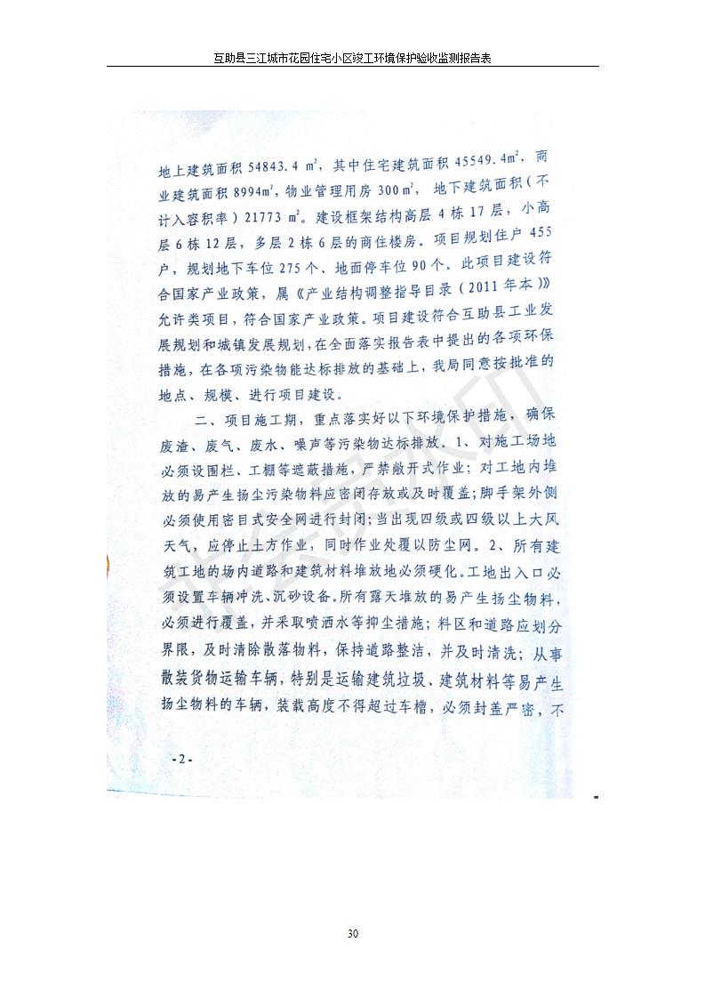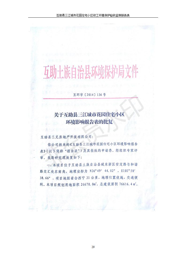 根據中華人民共和國國務院令第682號《國務院關于修改〈建設項目環(huán)境保護管理條例〉的決定》和《建設項目竣工環(huán)境保護驗收暫行辦法》(國務院令682號),互助縣三江城市花園住宅小區(qū)(包括竣工環(huán)境保護驗收監(jiān)測報告表和驗收意見)公示如下。 一、項目名稱: 互助縣三江城市花園住宅小區(qū)竣工環(huán)境保護驗收監(jiān)測報告表 二、地點:青海省海東市互助土族自治縣威遠鎮(zhèn)安定路與和諧路交匯處東南角 三、建設單位:青海三兄房地產開發(fā)有限公司 四、建設內容:項目規(guī)劃用地面積26670.0m2,實際占地面積26670.0m2,項目占地面積未發(fā)生變化,規(guī)劃設計建筑總面積76616.4m2,其中商業(yè)建筑面積8994m2。實際建筑總面積58639.64m2,其中商業(yè)建筑面積9894.27m2。 五、聯(lián)系人:張工 六、聯(lián)系電 話:0971-6515411 七、公示時間:二〇一九年六月五日至二〇一九年七月三日 公示期間,對上述公示內容如有異議,請以書面形式反饋,個人須署真實姓名,單位須加蓋公章。