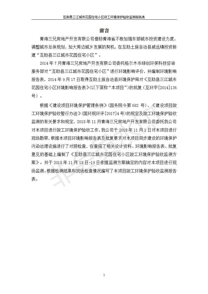 互助縣三江城市花園住宅小區(qū)竣工環(huán)境保護驗收監(jiān)測報告表公示發(fā)布日期:(2019-6-5) 點擊次數:2450 |