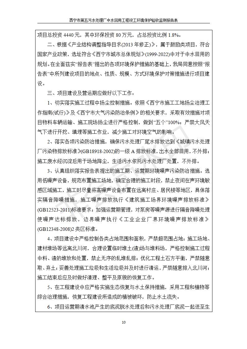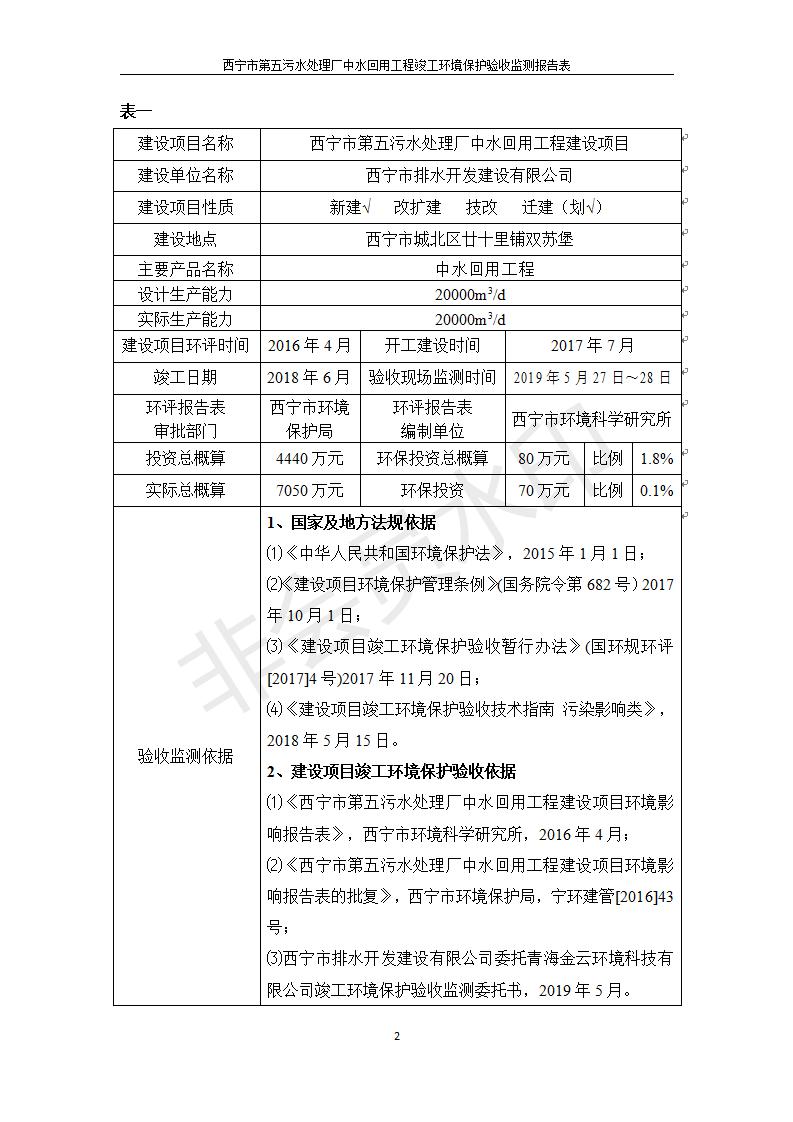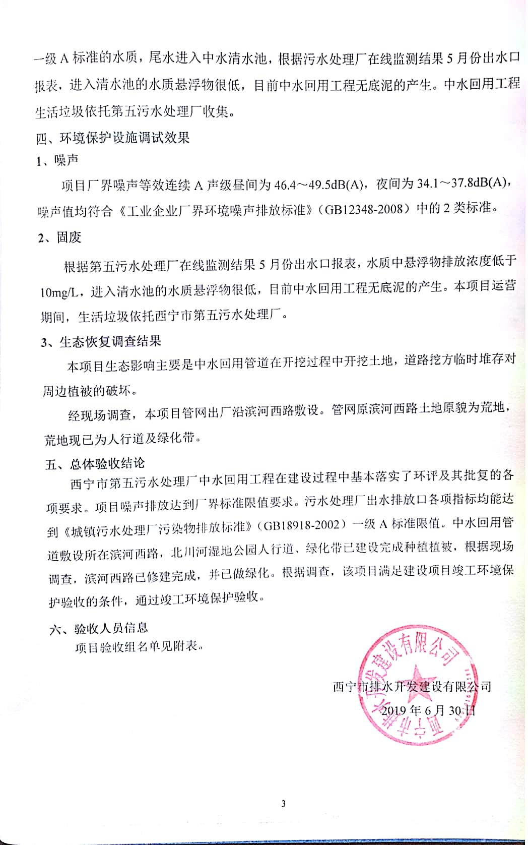 西寧市第五污水處理廠中水回用工程建設(shè)項(xiàng)目竣工環(huán)境保護(hù)驗(yàn)收監(jiān)測(cè)報(bào)告表公示發(fā)布日期:(2019-7-10) 點(diǎn)擊次數(shù):2333 |