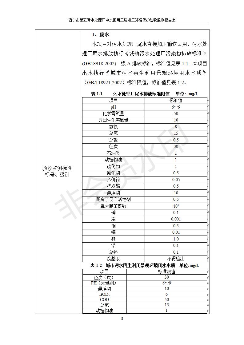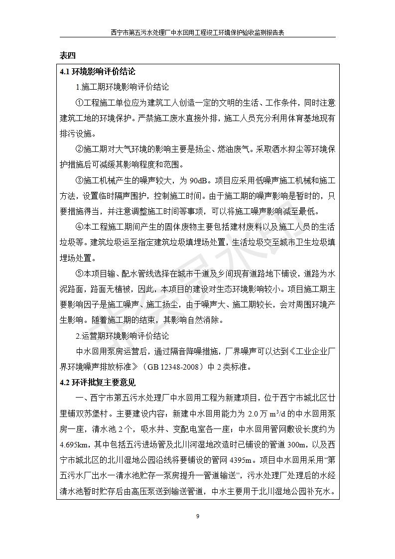 根據(jù)中華人民共和國(guó)國(guó)務(wù)院令第682號(hào)《國(guó)務(wù)院關(guān)于修改〈建設(shè)項(xiàng)目環(huán)境保護(hù)管理?xiàng)l例〉的決定》和《建設(shè)項(xiàng)目竣工環(huán)境保護(hù)驗(yàn)收暫行辦法》(國(guó)務(wù)院令682號(hào)),西寧市第五污水處理廠中水回用工程建設(shè)項(xiàng)目(包括竣工環(huán)境保護(hù)驗(yàn)收監(jiān)測(cè)報(bào)告表和驗(yàn)收意見(jiàn))公示如下。 一、項(xiàng)目名稱:西寧市第五污水處理廠中水回用工程建設(shè)項(xiàng)目 二、地點(diǎn):西寧市城北區(qū)廿十里鋪雙蘇堡 三、建設(shè)單位:西寧市排水開(kāi)發(fā)建設(shè)有限公司