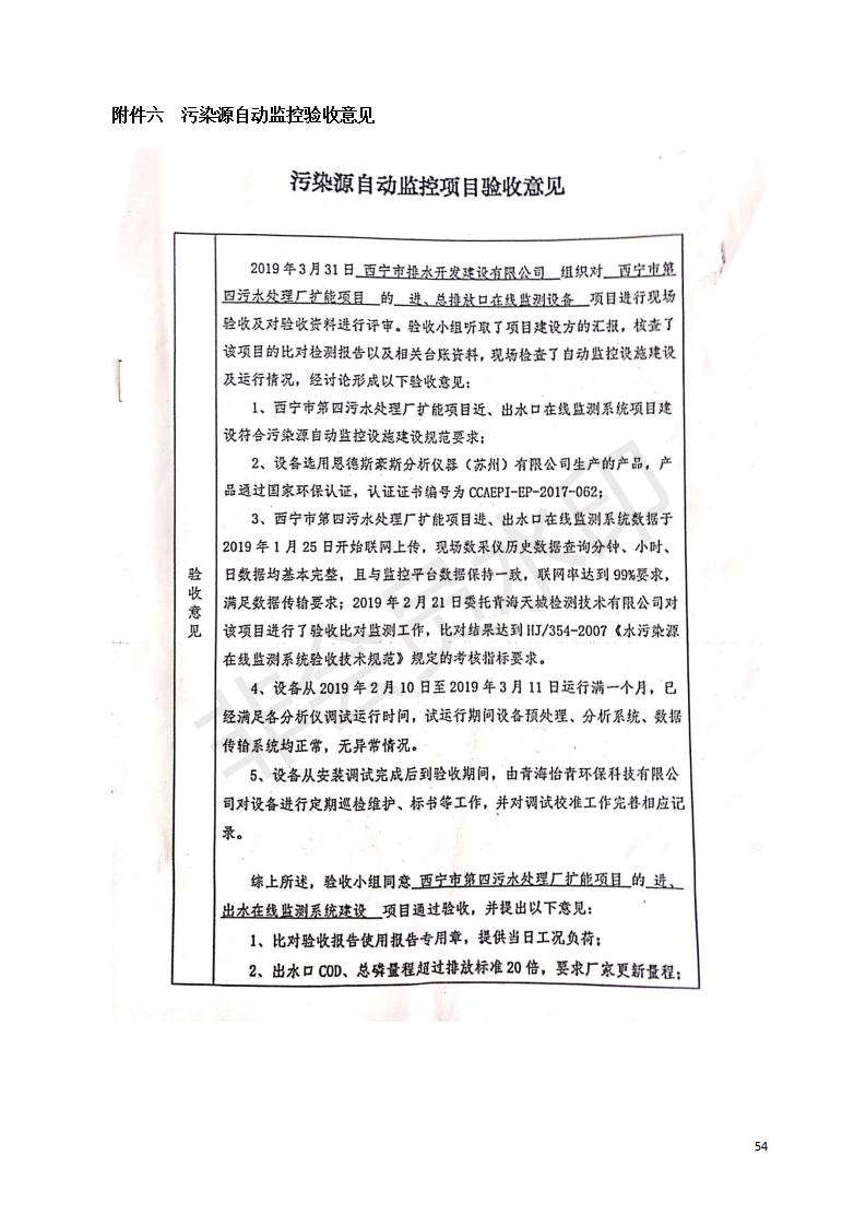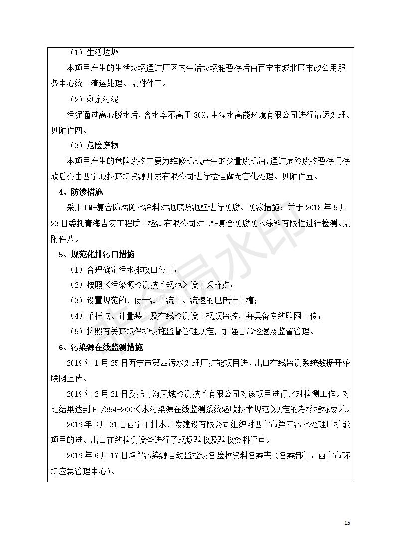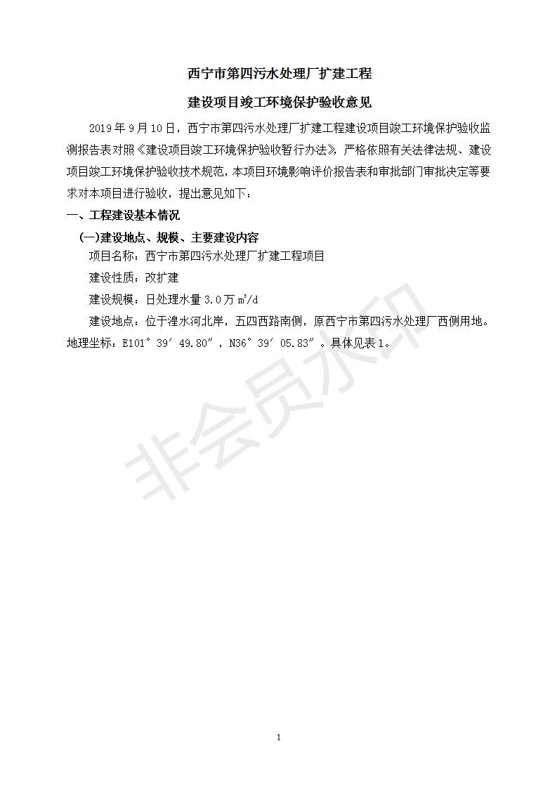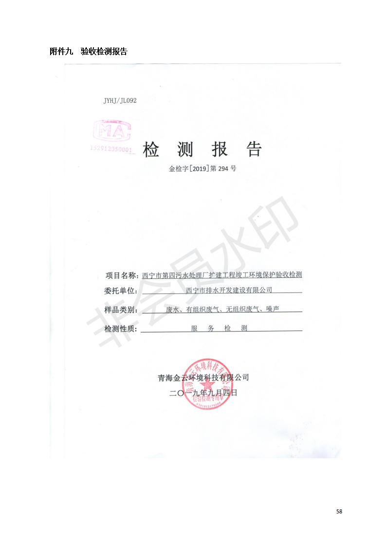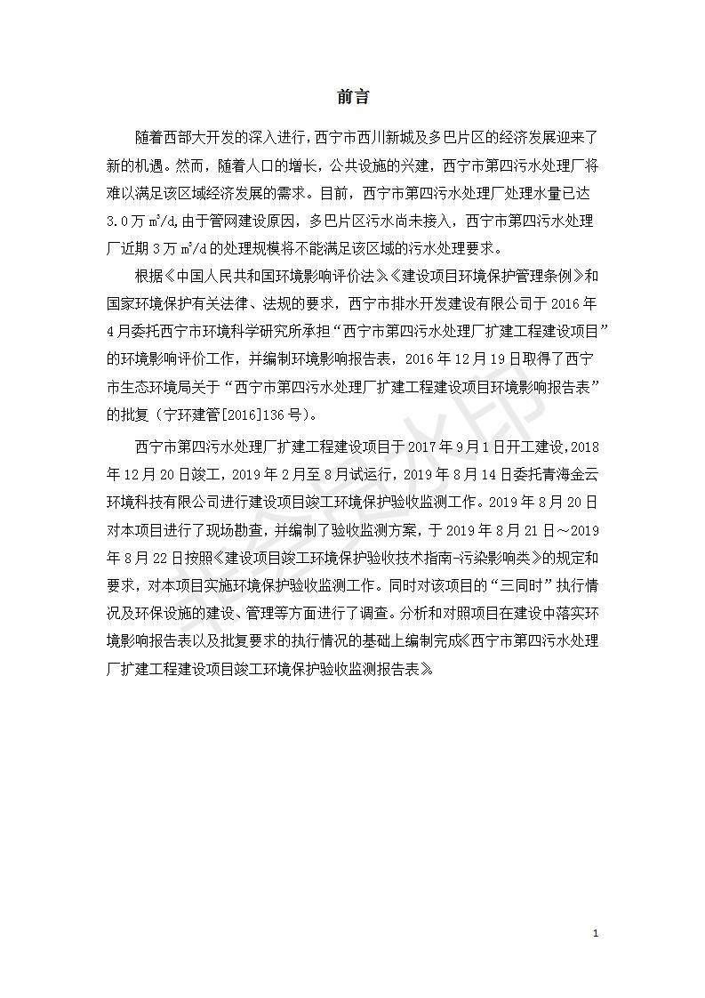 根據(jù)中華人民共和國國務(wù)院令第682號《國務(wù)院關(guān)于修改〈建設(shè)項目環(huán)境保護(hù)管理條例〉的決定》和《建設(shè)項目竣工環(huán)境保護(hù)驗收暫行辦法》(國務(wù)院令682號),西寧市第四污水處理廠擴(kuò)建工程建設(shè)項目(包括竣工環(huán)境保護(hù)驗收監(jiān)測報告表和驗收意見)公示如下。 一、項目名稱:西寧市第四污水處理廠擴(kuò)建工程建設(shè)項目 二、地點:五四西路南側(cè),原西寧市第四污水處理廠西側(cè)用地 三、建設(shè)單位:西寧市排水開發(fā)建設(shè)有限公司 四、建設(shè)內(nèi)容:第四污水處理廠擴(kuò)建工程五、聯(lián)系人:張工 六、聯(lián)系電 話:0971-6515411 七、公示時間:二〇一九年九月十七日至二〇一九年十月十八日公示期間,對上述公示內(nèi)容如有異議,請以書面形式反饋,個人須署真實姓名,單位須加蓋公章。