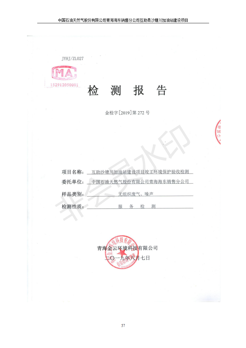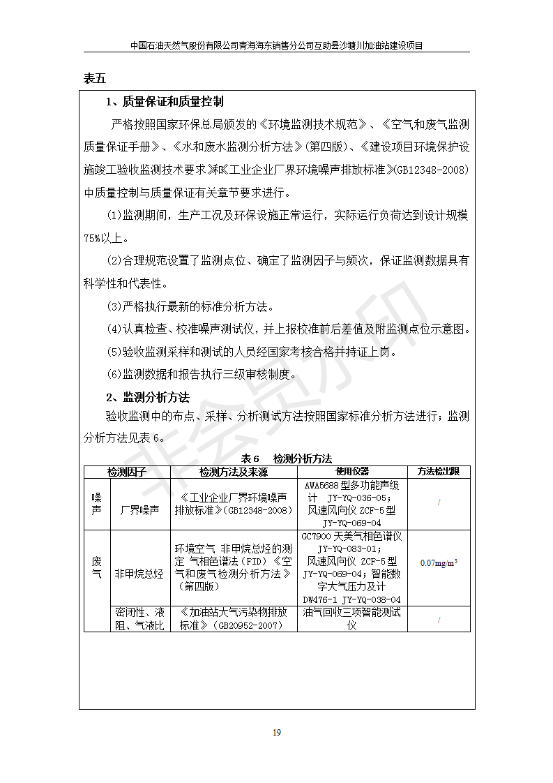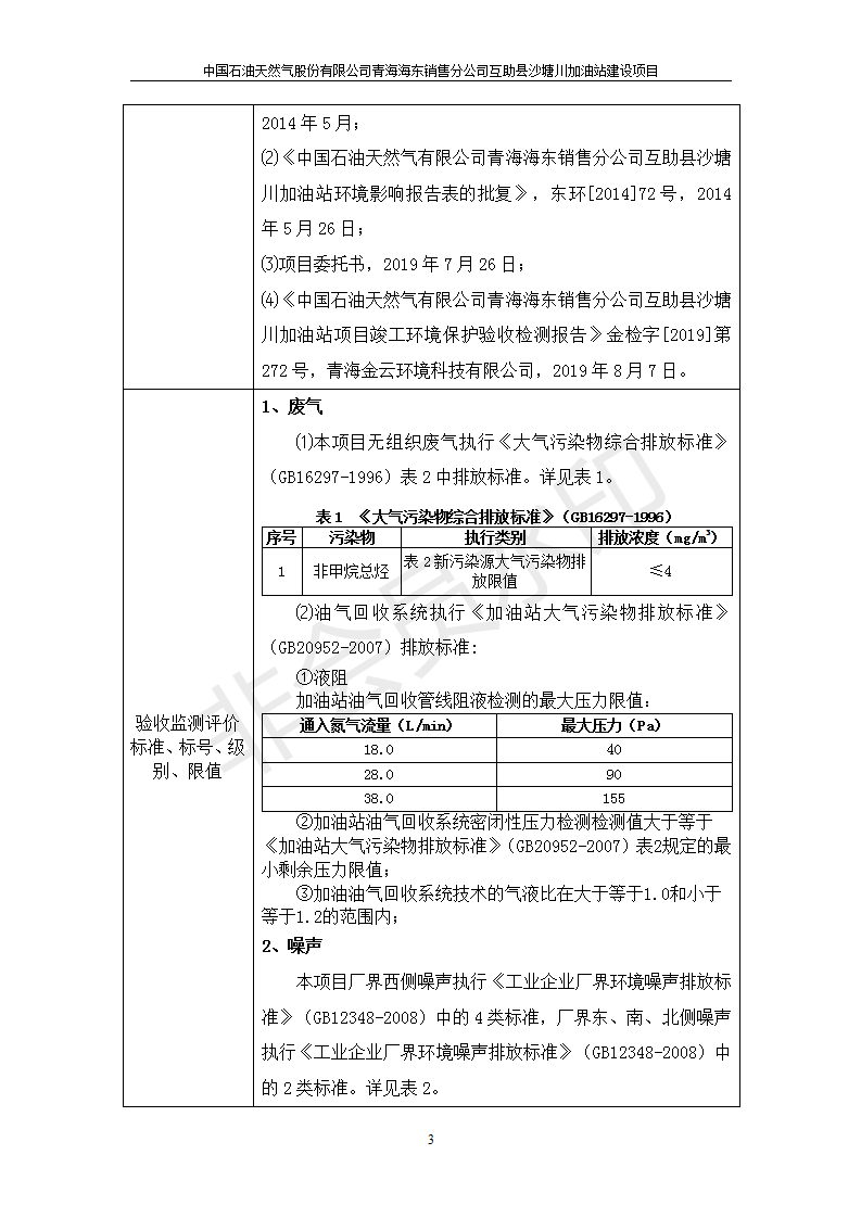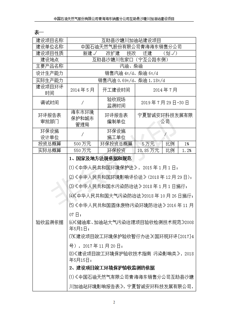 互助縣沙塘川加油站建設(shè)項目竣工環(huán)境保護驗收監(jiān)測報告表發(fā)布日期:(2019-9-27) 點擊次數(shù):2145 |