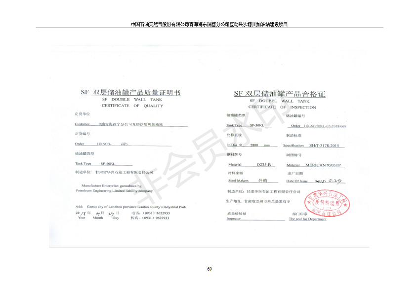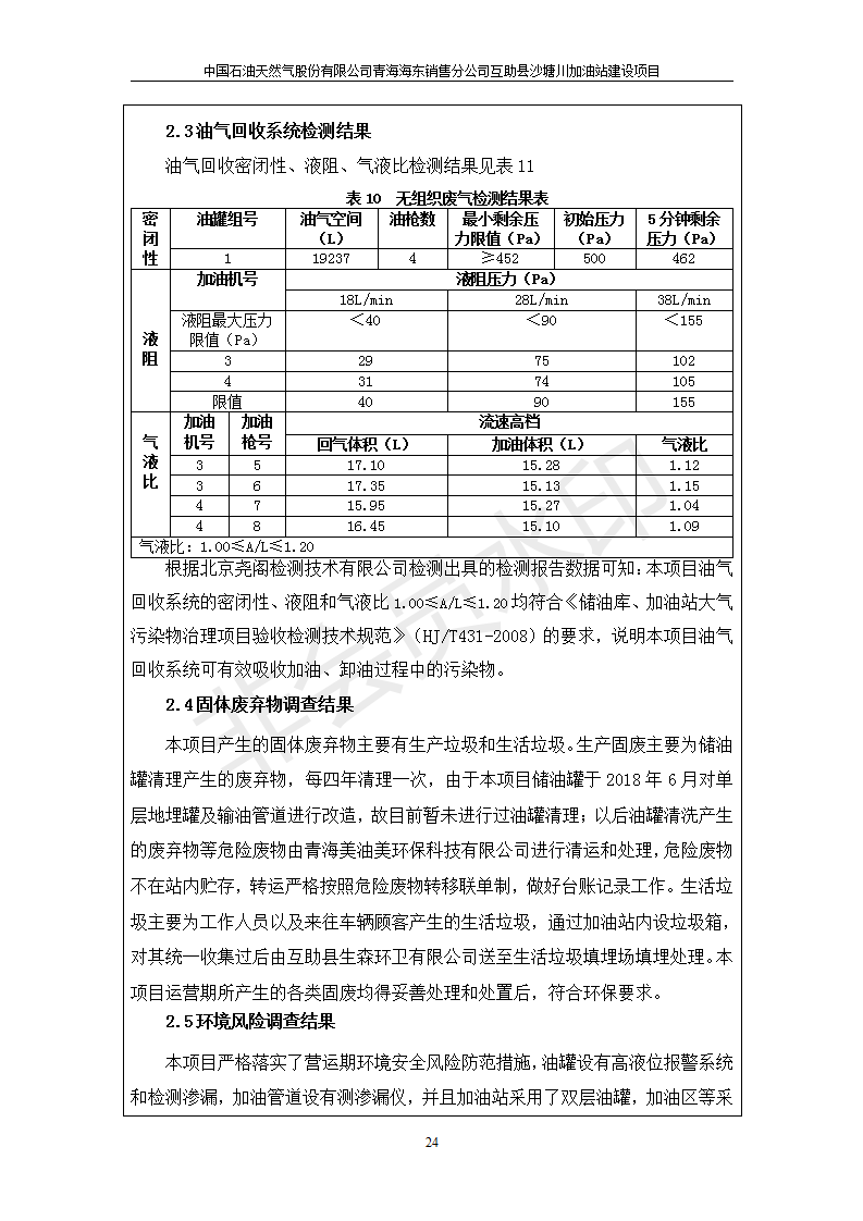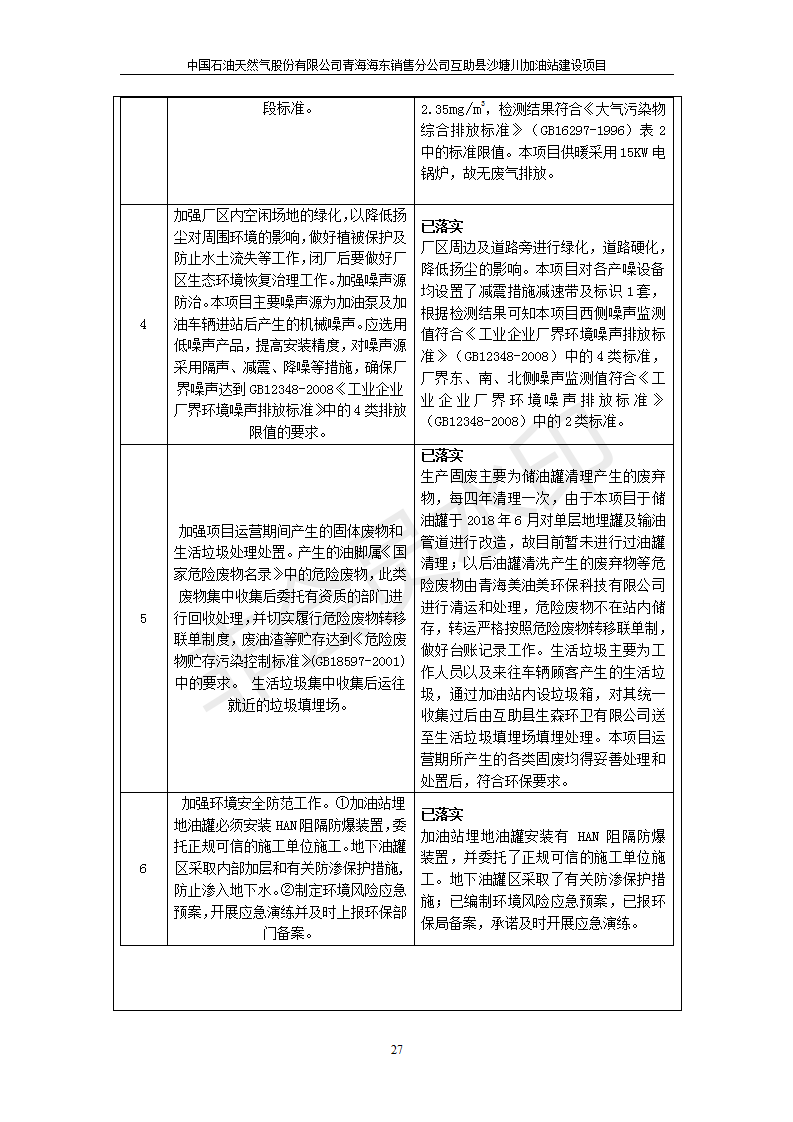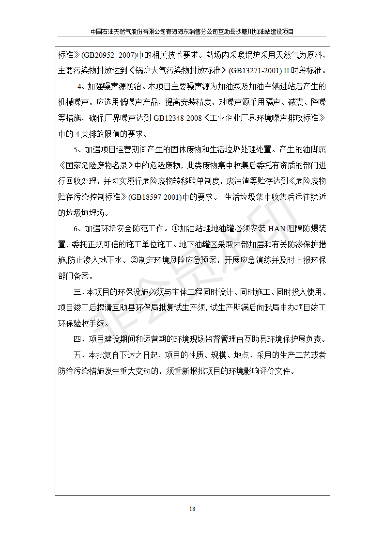 互助縣沙塘川加油站建設(shè)項目竣工環(huán)境保護驗收監(jiān)測報告表發(fā)布日期:(2019-9-27) 點擊次數(shù):2145 |