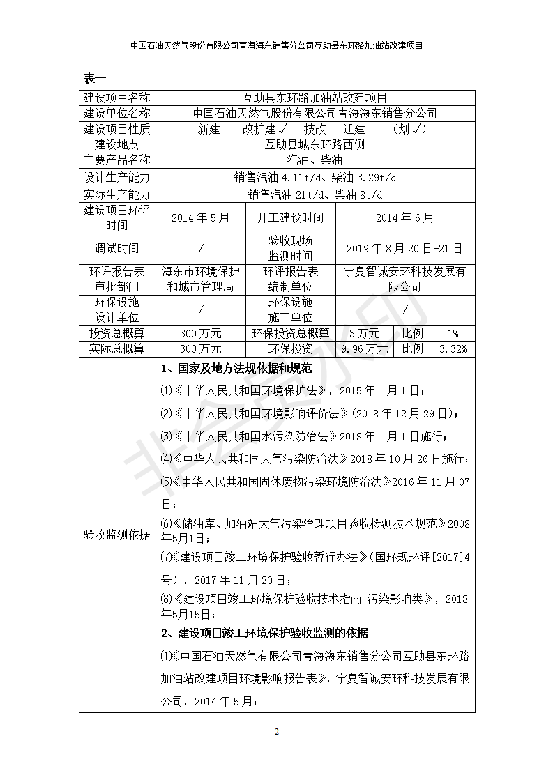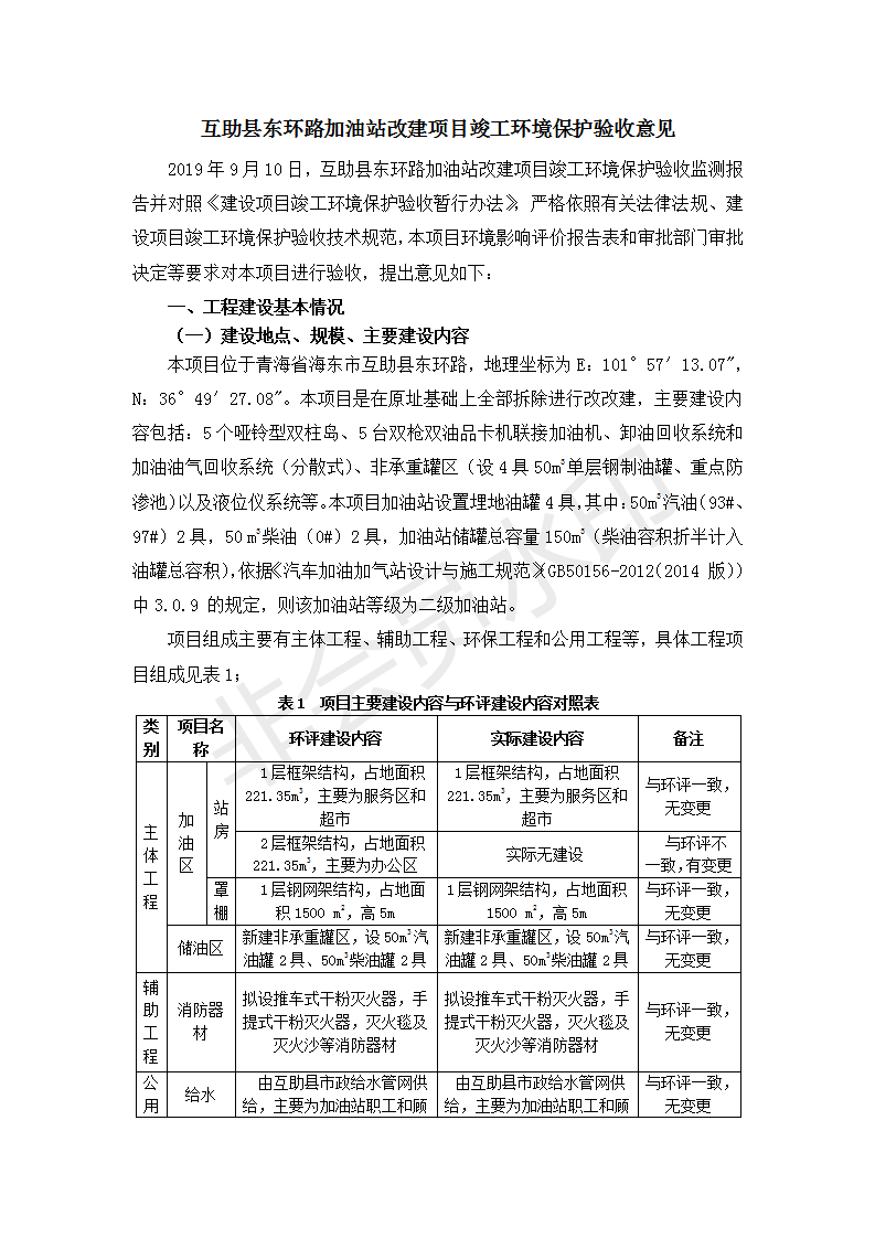 互助縣東環(huán)路加油站改建項(xiàng)目竣工環(huán)境保護(hù)驗(yàn)收監(jiān)測(cè)報(bào)告表公示發(fā)布日期:(2019-9-27) 點(diǎn)擊次數(shù):2333 |