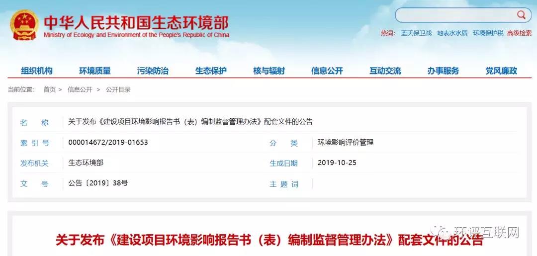 環(huán)境部發(fā)布《建設項目環(huán)境影響報告書(表)編制監(jiān)督管理辦法》配套文件發(fā)布日期:(2019-10-28) 點擊次數(shù):2396 |