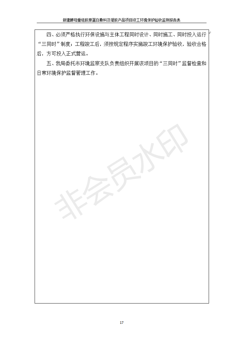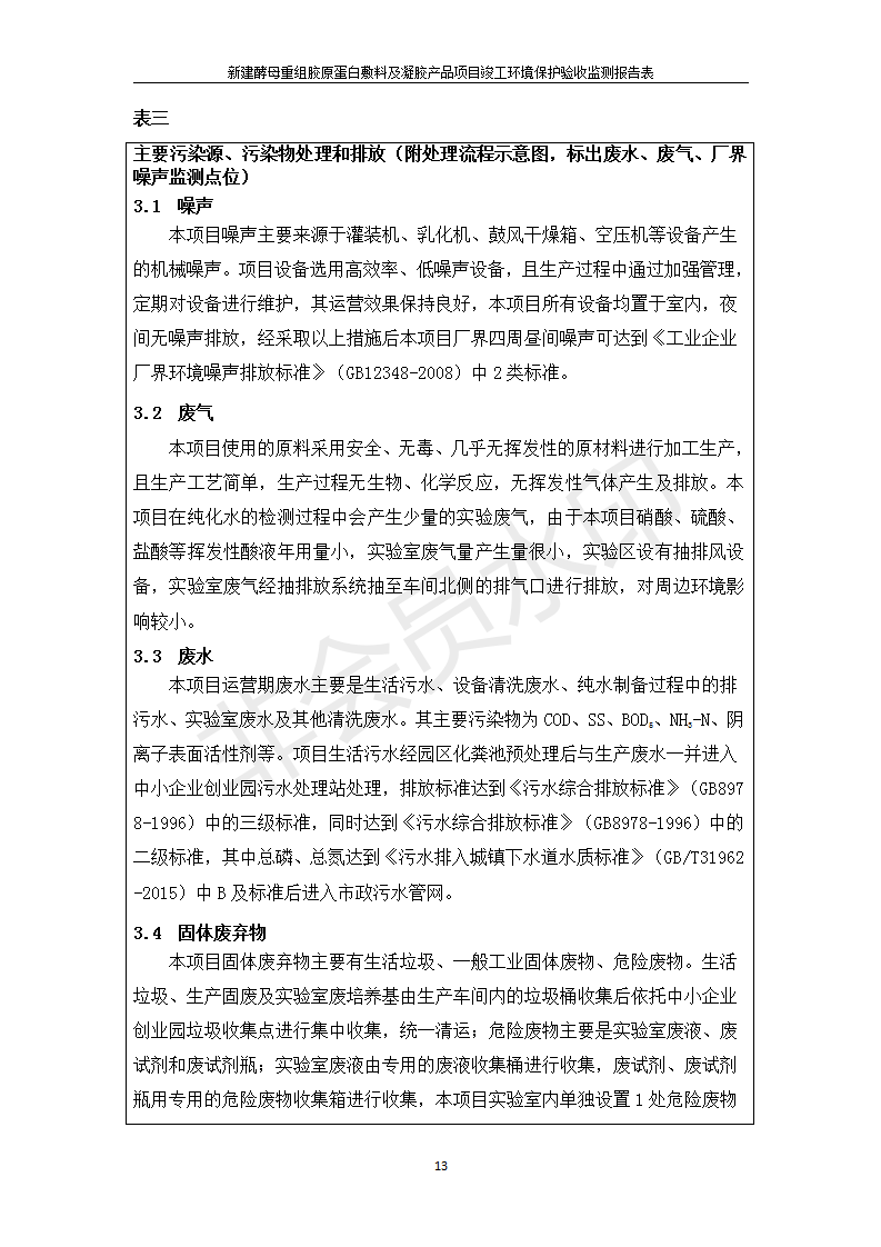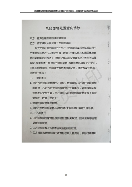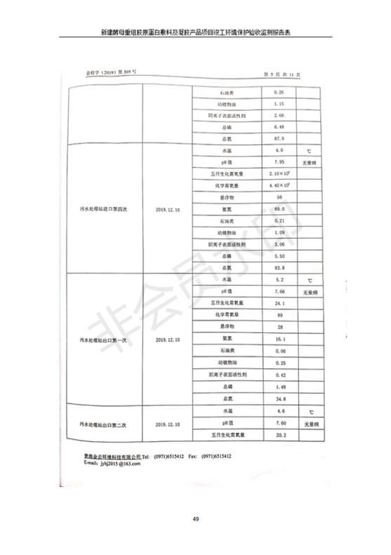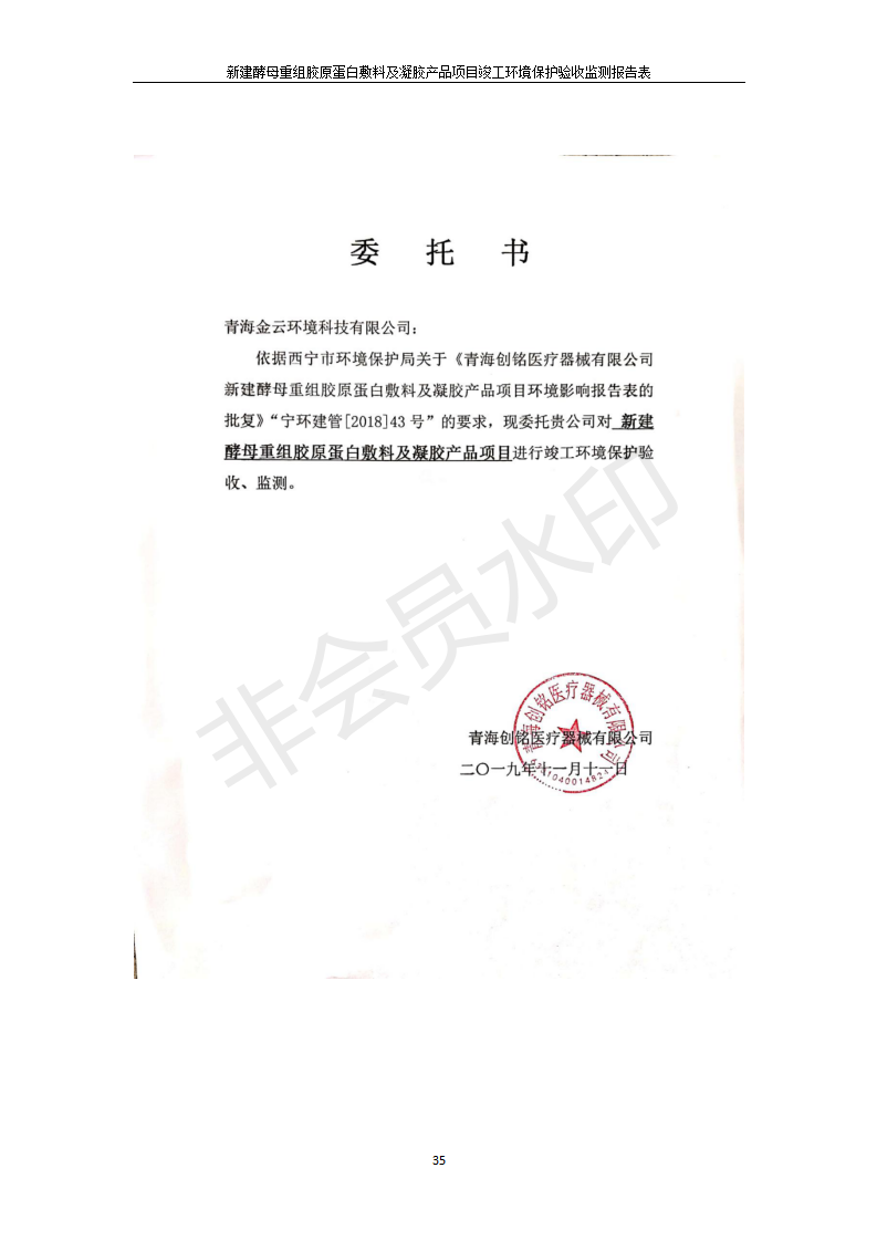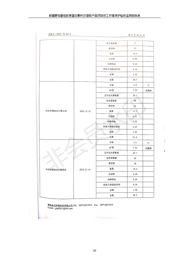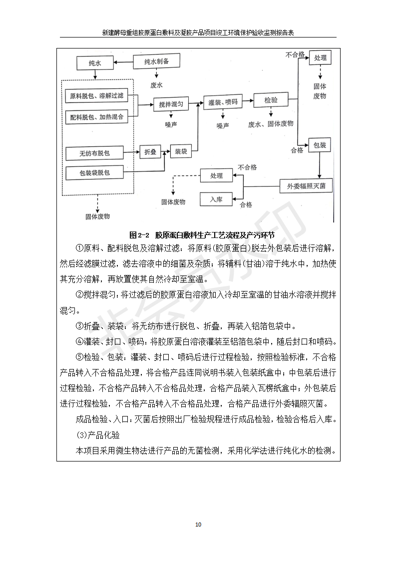 根據(jù)中華人民共和國國務院令第682號《國務院關于修改〈建設項目環(huán)境保護管理條例〉的決定》和《建設項目竣工環(huán)境保護驗收暫行辦法》(國務院令682號),新建酵母重組膠原蛋白敷料及凝膠產(chǎn)品項目(包括竣工環(huán)境保護驗收監(jiān)測報告表和驗收意見)公示如下。 一、項目名稱:新建酵母重組膠原蛋白敷料及凝膠產(chǎn)品項目 二、地點:西寧市生物園區(qū)經(jīng)四路26號15號樓2層 五、聯(lián)系人:董繼風 六、聯(lián)系電話:18606125050 七、公示時間:二〇二〇年一月十三日至二〇二〇年二月十二日 公示期間,對上述公示內容如有異議,請以書面形式反饋,個人須署真實姓名,單位須加蓋公章。