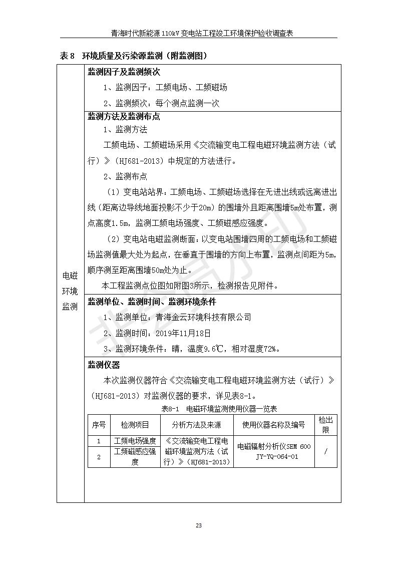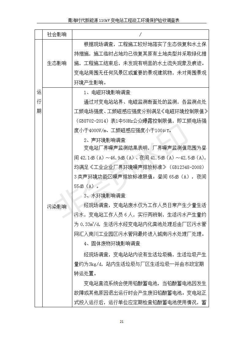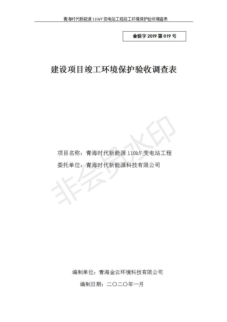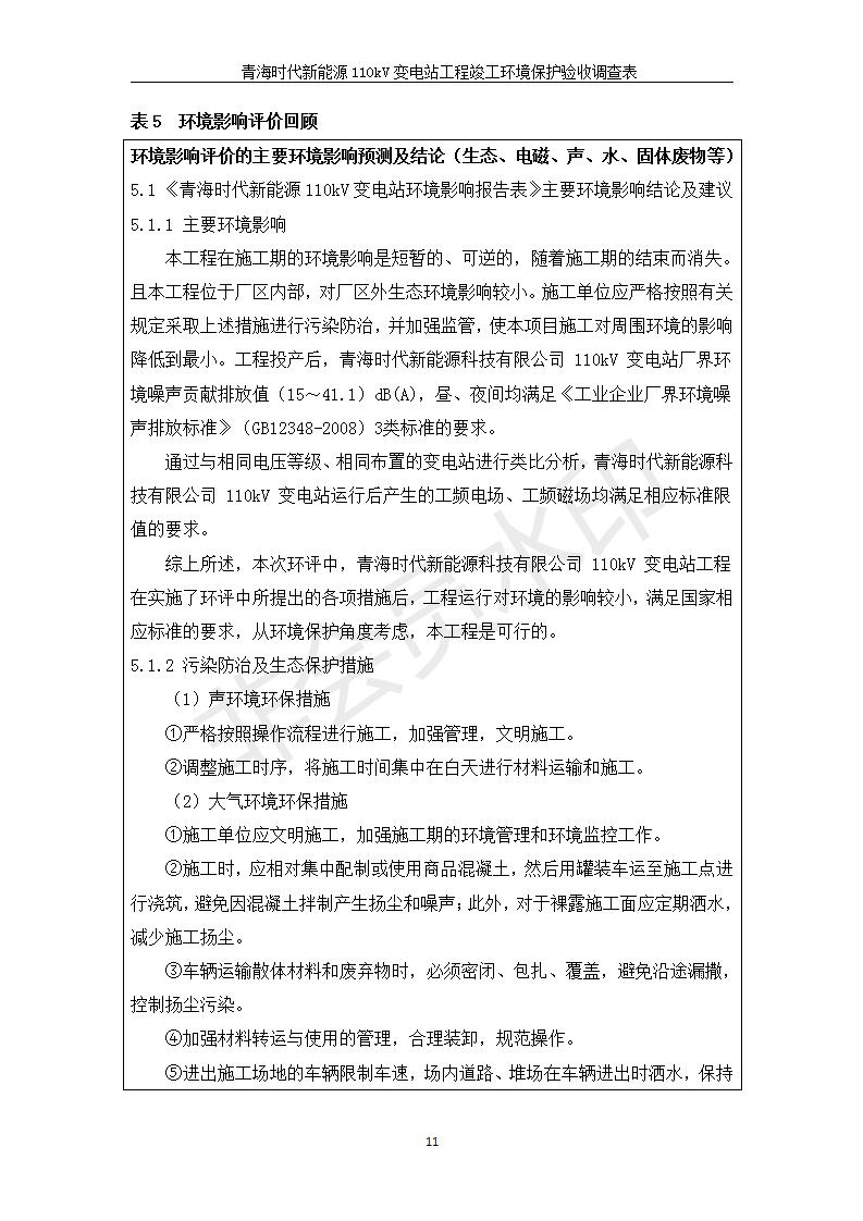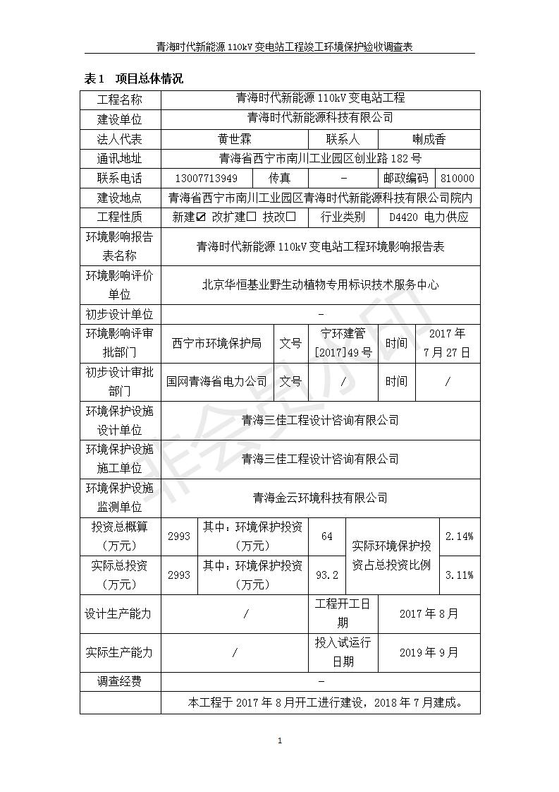 青海時代新能源110kV變電站工程竣工環(huán)境保護驗收調(diào)查表公示發(fā)布日期:(2020-1-14) 點擊次數(shù):2681 |