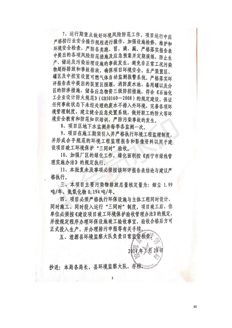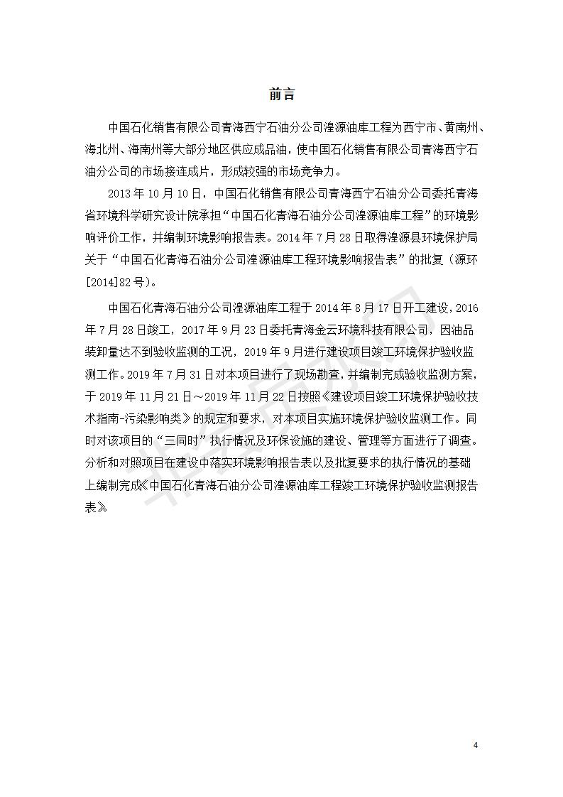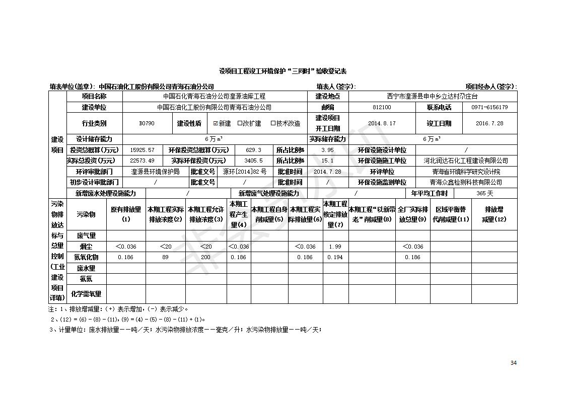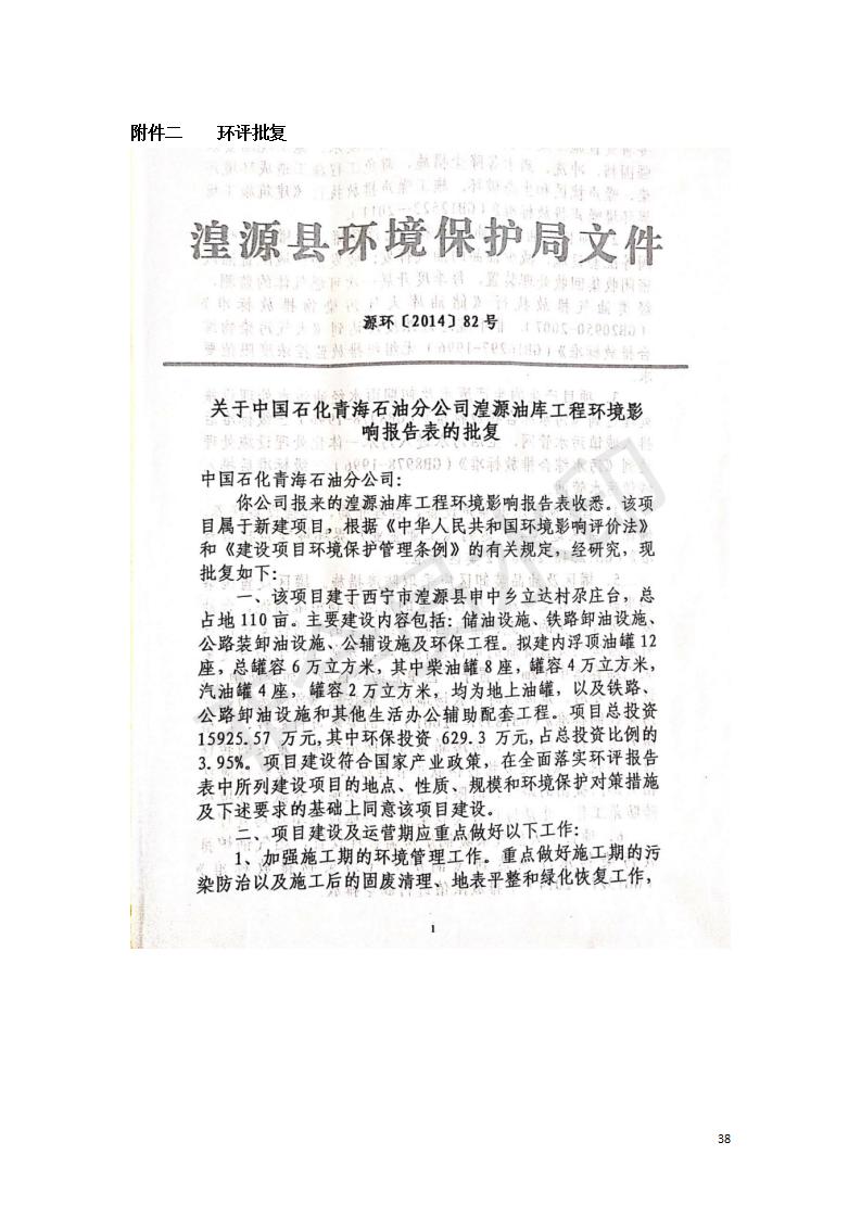 據(jù)中華人民共和國(guó)國(guó)務(wù)院令第682號(hào)《國(guó)務(wù)院關(guān)于修改〈建設(shè)項(xiàng)目環(huán)境保護(hù)管理?xiàng)l例〉的決定》和《建設(shè)項(xiàng)目竣工環(huán)境保護(hù)驗(yàn)收暫行辦法》(國(guó)務(wù)院令682號(hào)),中國(guó)石化青海石油分公司湟源油庫(kù)工程建設(shè)項(xiàng)目(包括竣工環(huán)境保護(hù)驗(yàn)收監(jiān)測(cè)報(bào)告表和驗(yàn)收意見)公示如下。 一、項(xiàng)目名稱:中國(guó)石化青海石油分公司湟源油庫(kù)工程建設(shè)項(xiàng)目 二、地點(diǎn):西寧市湟源縣申中鄉(xiāng)立達(dá)村尕莊臺(tái) 三、建設(shè)單位:中國(guó)石化銷售股份有限公司青海石油分公司 四、建設(shè)內(nèi)容:油品儲(chǔ)量6萬(wàn)m3、其他配套設(shè)施。五、聯(lián)系人:董恒棟 六、聯(lián)系電話:18697130811 七、公示時(shí)間:二〇二〇年三月十三日至二〇二〇年四月十日 公示期間,對(duì)上述公示內(nèi)容如有異議,請(qǐng)以書面形式反饋,個(gè)人須署真實(shí)姓名,單位須加蓋公章。