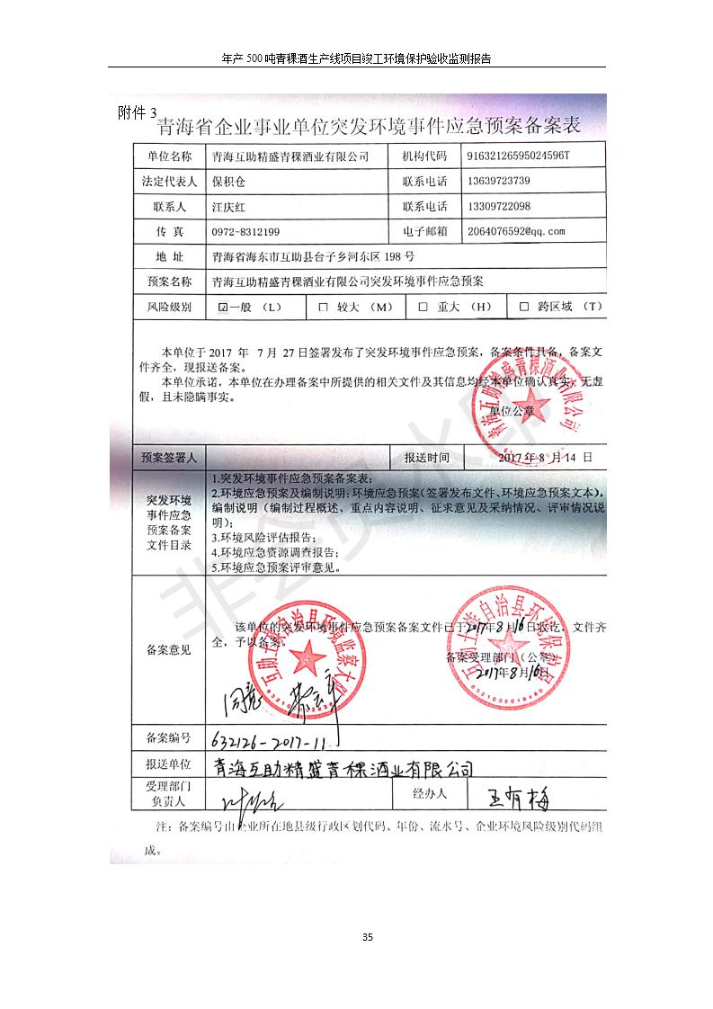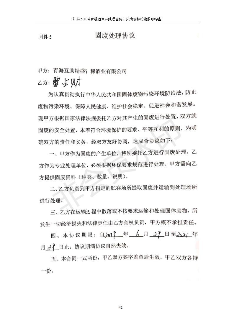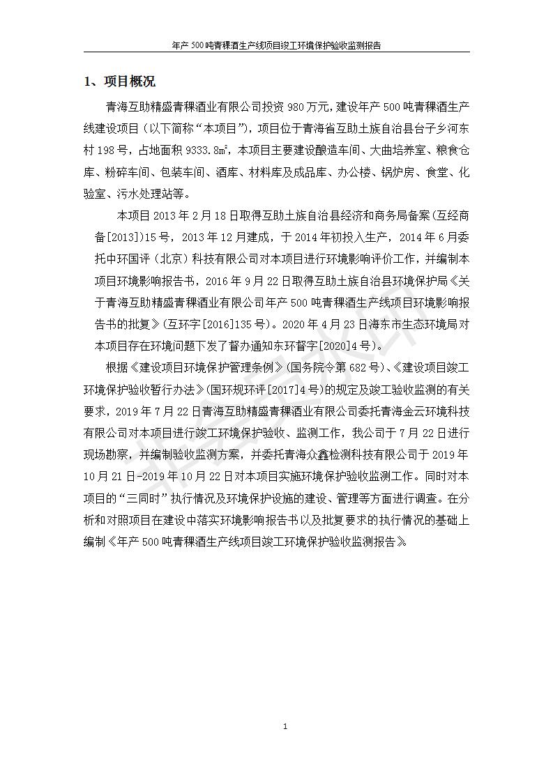 青海互助精盛青稞酒業(yè)有限公司年產(chǎn)500噸青稞酒業(yè)生產(chǎn)線建設項目竣工環(huán)境保護驗收監(jiān)測報告表公示發(fā)布日期:(2020-4-27) 點擊次數(shù):2455 |