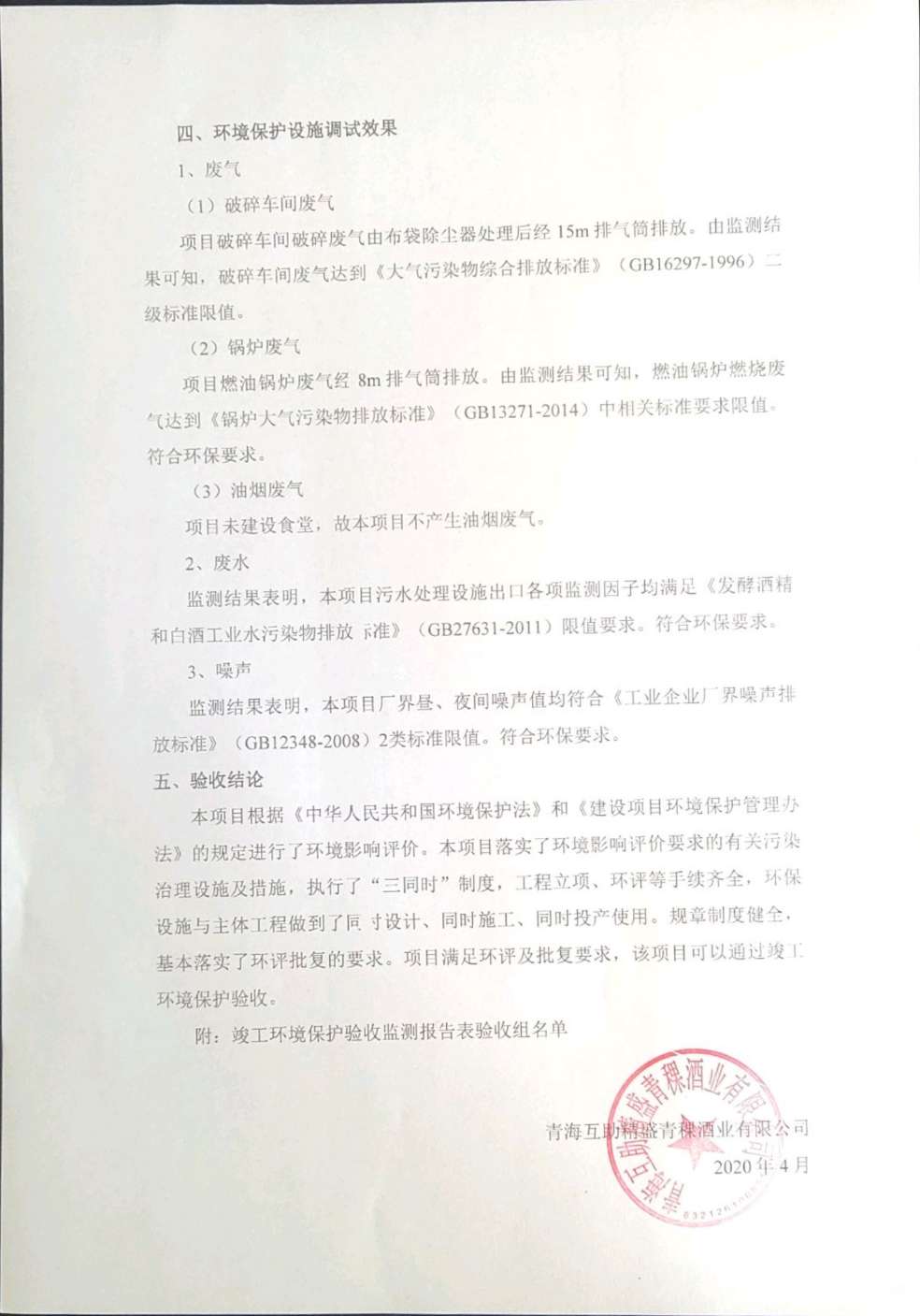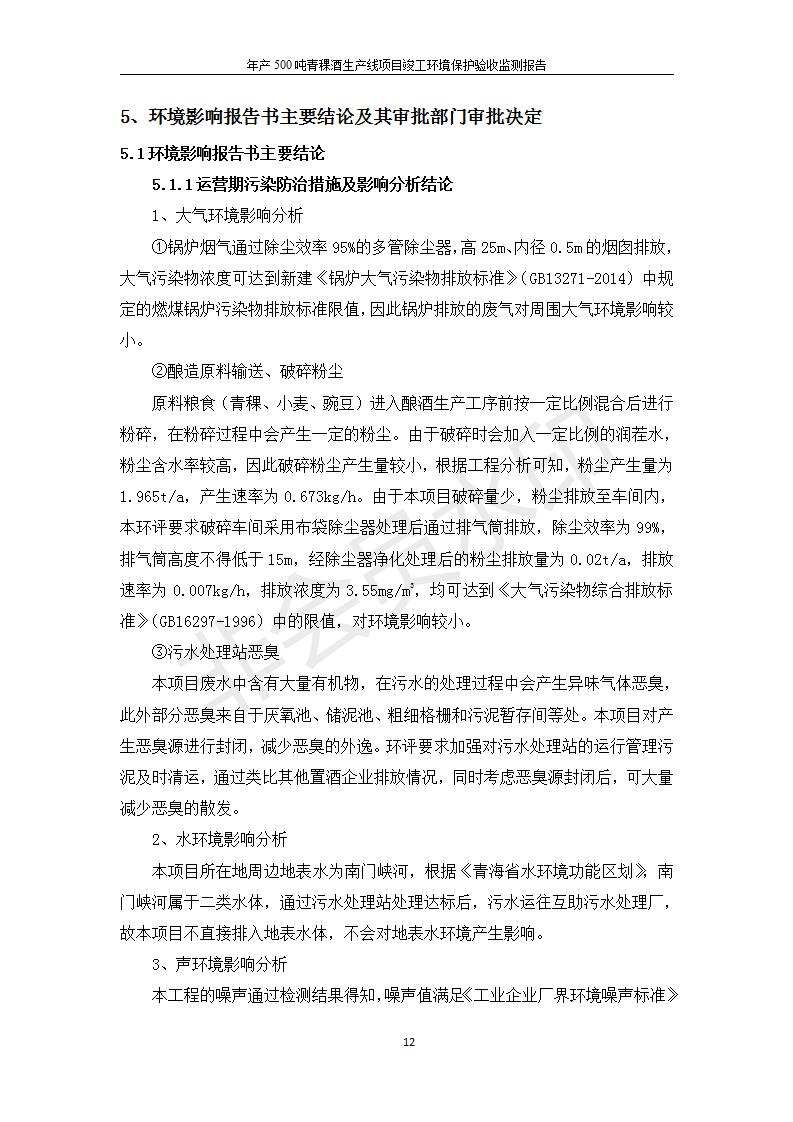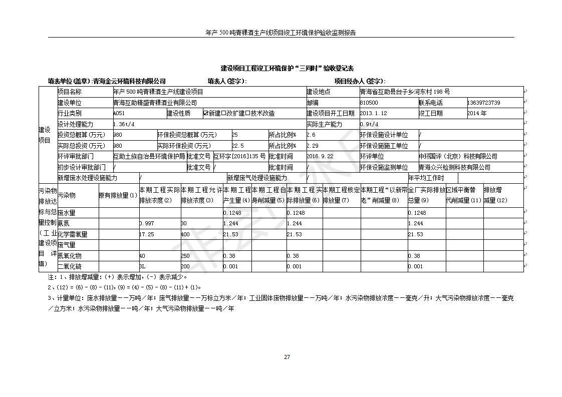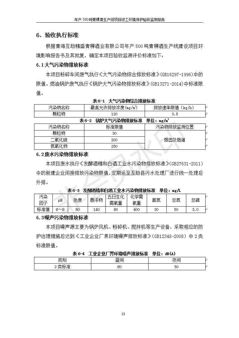 根據(jù)中華人民共和國國務院令第682號《國務院關于修改〈建設項目環(huán)境保護管理條例〉的決定》和《建設項目竣工環(huán)境保護驗收暫行辦法》(國務院令682號),綜合檢測實驗室建設項目(包括竣工環(huán)境保護驗收監(jiān)測報告表和驗收意見)公示如下。 一、項目名稱:青;ブ⑶囡茦I(yè)有限公司年產(chǎn)500噸青稞酒業(yè)生產(chǎn)線建設項目 二、地點:青海省海東市互助土族自治縣臺子鄉(xiāng)河東村198號