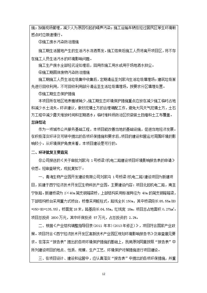 根據(jù)中華人民共和國國務(wù)院令第682號《國務(wù)院關(guān)于修改〈建設(shè)項目環(huán)境保護管理條例〉的決定》和《建設(shè)項目竣工環(huán)境保護驗收暫行辦法》(國務(wù)院令682號),劉家溝1號橋梁(機電二路)建設(shè)項目竣工環(huán)境保護驗收調(diào)查表,(包括竣工環(huán)境保護驗收調(diào)查表和驗收意見)公示如下。 一、項目名稱:劉家溝1號橋梁(機電二路)建設(shè)項目竣工環(huán)境保護驗收調(diào)查表 二、地點:青海省西寧市城北區(qū)生物園區(qū) 三、建設(shè)單位:青海生物產(chǎn)業(yè)園開發(fā)建設(shè)有限公司 四、建設(shè)內(nèi)容:本項目主要建設(shè)內(nèi)容為橋梁工程、接線路基等工程。項目南北走向,北起機電二路,南至寧張路,項目全長150m. 五、聯(lián)系人:張工 六、聯(lián)系電 話:0971-6515411 七、公示時間:二〇二〇年六月二日至二〇二〇年六月三十日 公示期間,對上述公示內(nèi)容如有異議,請以書面形式反饋,個人須署真實姓名,單位須加蓋公章。 |