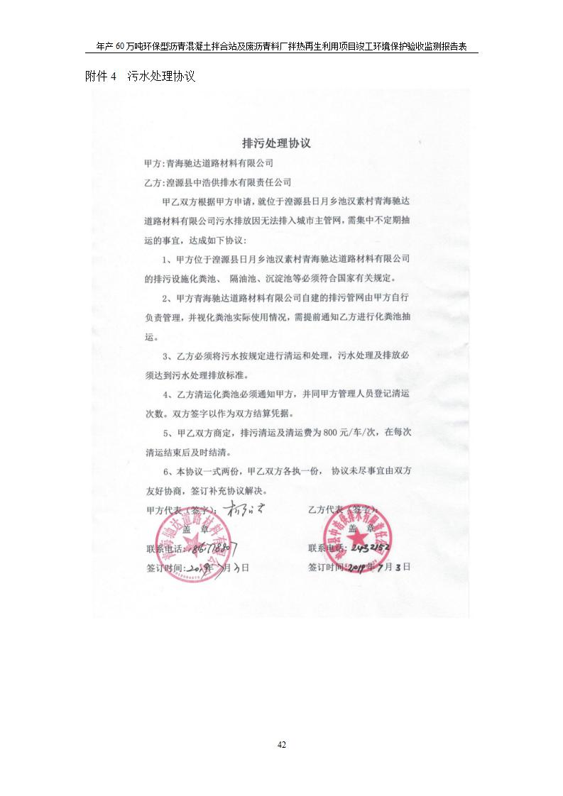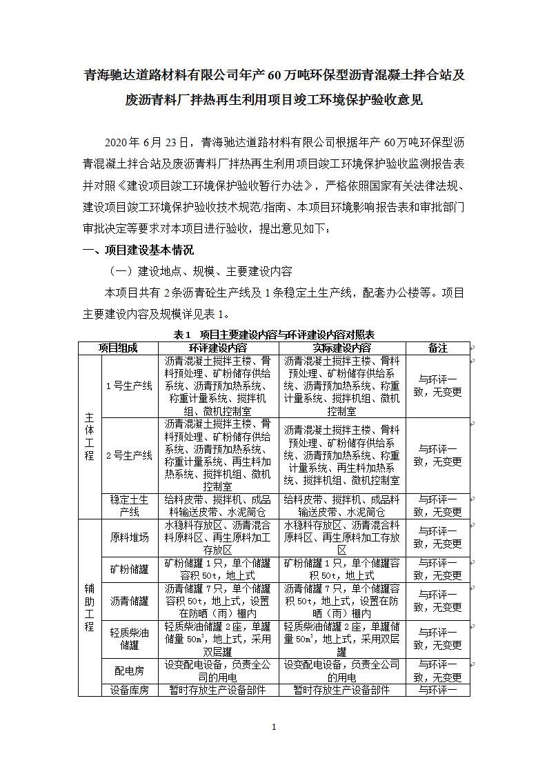 根據(jù)中華人民共和國(guó)國(guó)務(wù)院令第682號(hào)《國(guó)務(wù)院關(guān)于修改〈建設(shè)項(xiàng)目環(huán)境保護(hù)管理?xiàng)l例〉的決定》和《建設(shè)項(xiàng)目竣工環(huán)境保護(hù)驗(yàn)收暫行辦法》(國(guó)務(wù)院令682號(hào)),青海馳達(dá)道路材料有限公司年產(chǎn)60萬(wàn)噸環(huán)保型瀝青混凝土拌合站及廢瀝青料廠拌熱再生利用項(xiàng)目竣工環(huán)境保護(hù)驗(yàn)收監(jiān)測(cè)報(bào)告表公示如下。 一、項(xiàng)目名稱:年產(chǎn)60萬(wàn)噸環(huán)保型瀝青混凝土拌合站及廢瀝青料廠拌熱再生利用項(xiàng)目竣工環(huán)境保護(hù)驗(yàn)收監(jiān)測(cè)報(bào)告表 二、地點(diǎn):湟源縣日月藏族鄉(xiāng)池漢素村 三、建設(shè)單位:青海馳達(dá)道路材料有限公司 四、建設(shè)內(nèi)容:本項(xiàng)目共有2條瀝青砼生產(chǎn)線及1條穩(wěn)定土生產(chǎn)線,配套辦公樓等。 五、聯(lián)系人:楊工 六、聯(lián)系電 話:0971-6515411 七、公示時(shí)間:二〇二〇年七月六日至二〇二〇年七月三十一日 公示期間,對(duì)上述公示內(nèi)容如有異議,請(qǐng)以書(shū)面形式反饋,個(gè)人須署真實(shí)姓名,單位須加蓋公章。