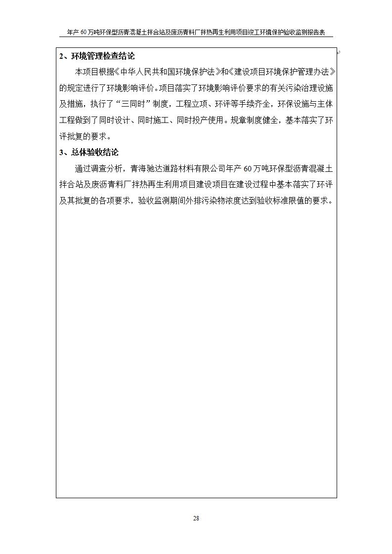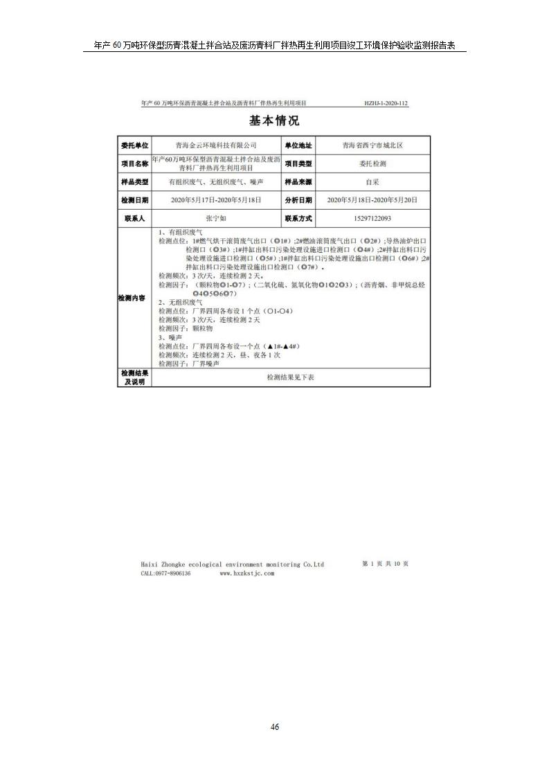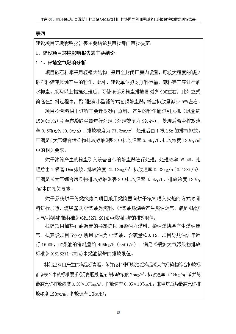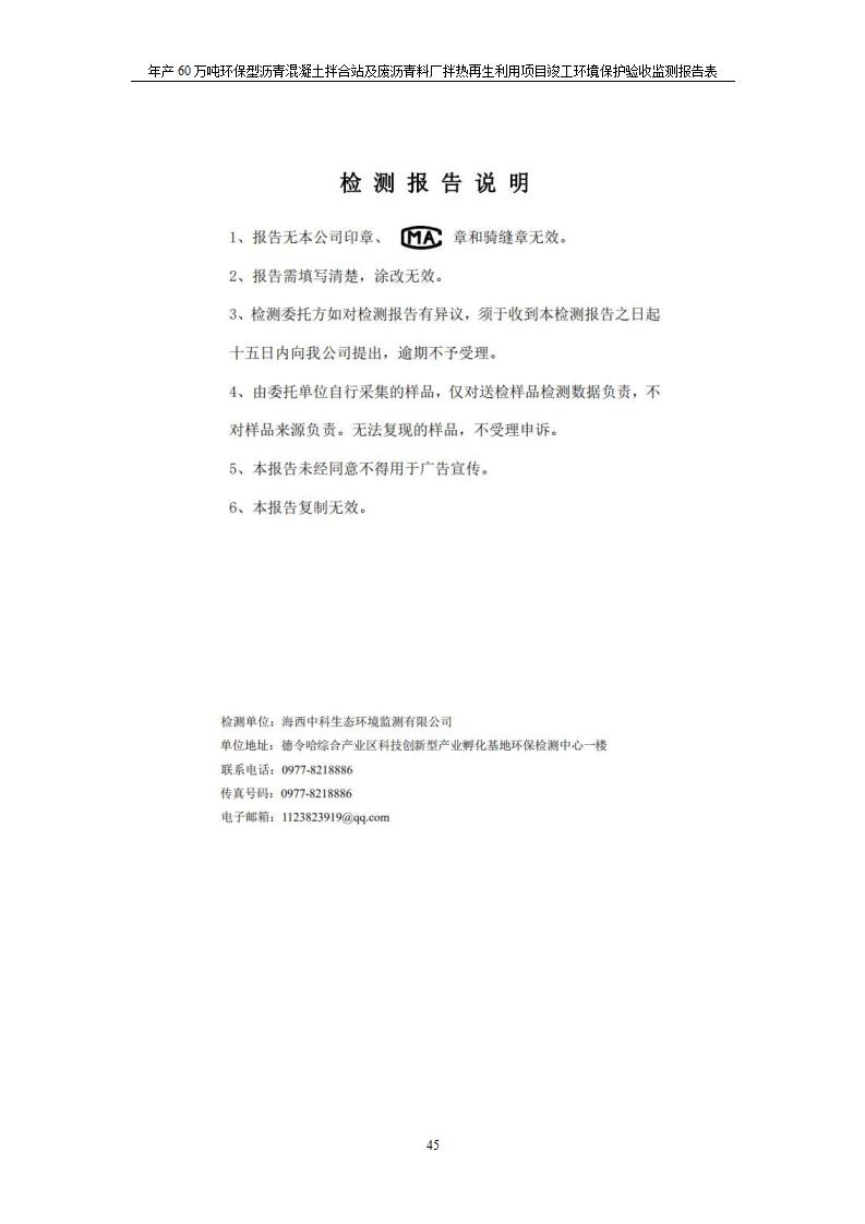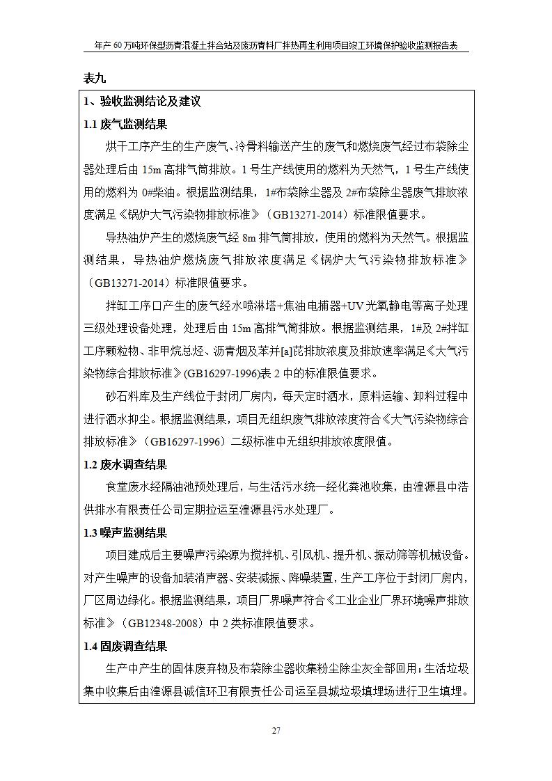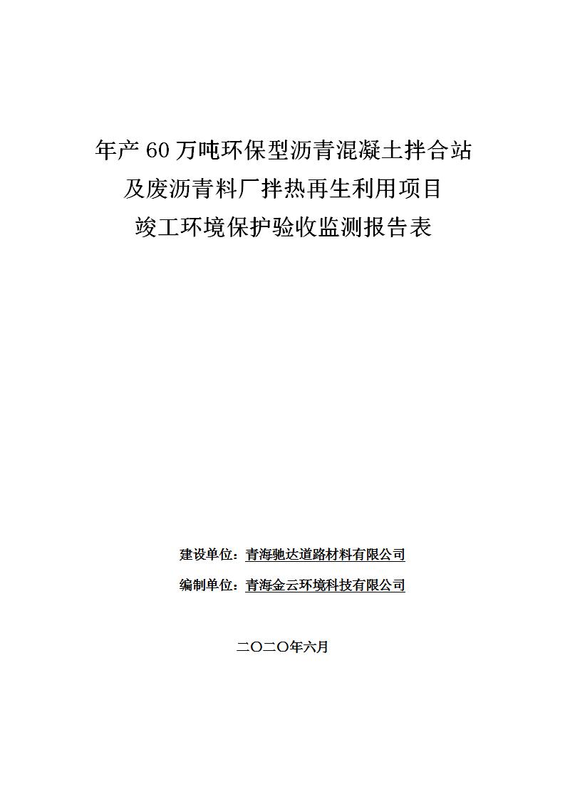 年產(chǎn)60萬(wàn)噸環(huán)保型瀝青混凝土拌合站及廢瀝青料廠拌熱再生利用項(xiàng)目竣工環(huán)境保護(hù)驗(yàn)收監(jiān)測(cè)報(bào)告表公示發(fā)布日期:(2020-7-6) 點(diǎn)擊次數(shù):3833 |