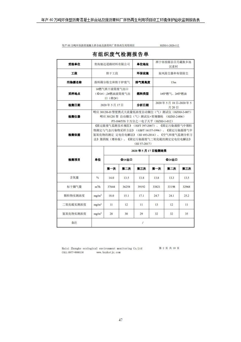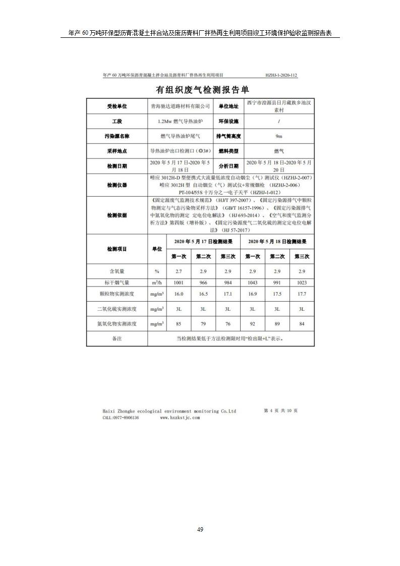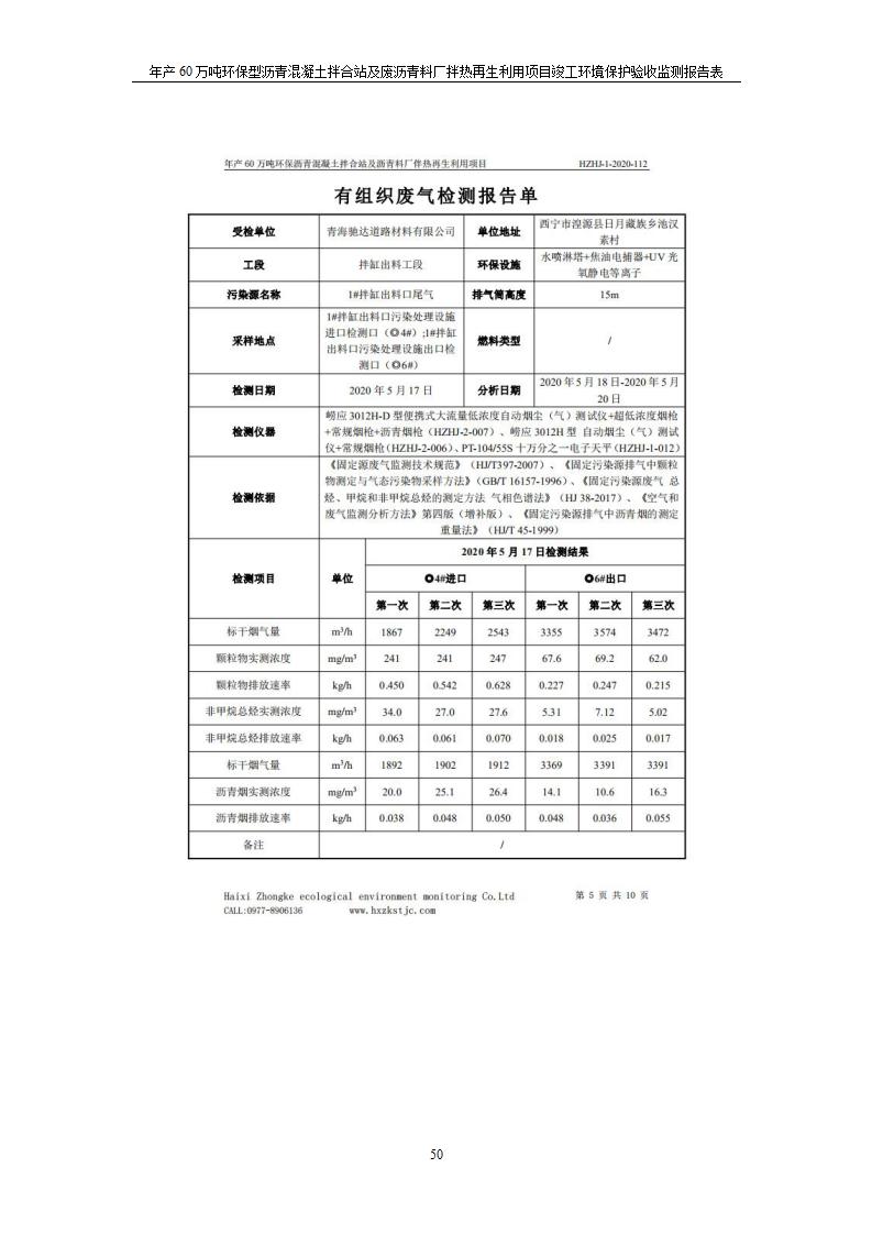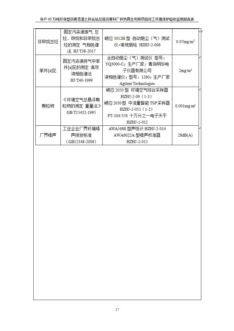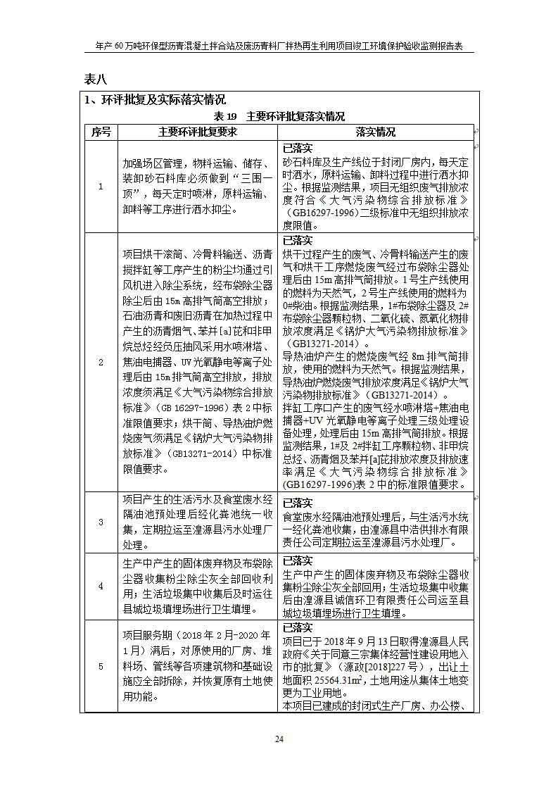 年產(chǎn)60萬(wàn)噸環(huán)保型瀝青混凝土拌合站及廢瀝青料廠拌熱再生利用項(xiàng)目竣工環(huán)境保護(hù)驗(yàn)收監(jiān)測(cè)報(bào)告表公示發(fā)布日期:(2020-7-6) 點(diǎn)擊次數(shù):3833 |