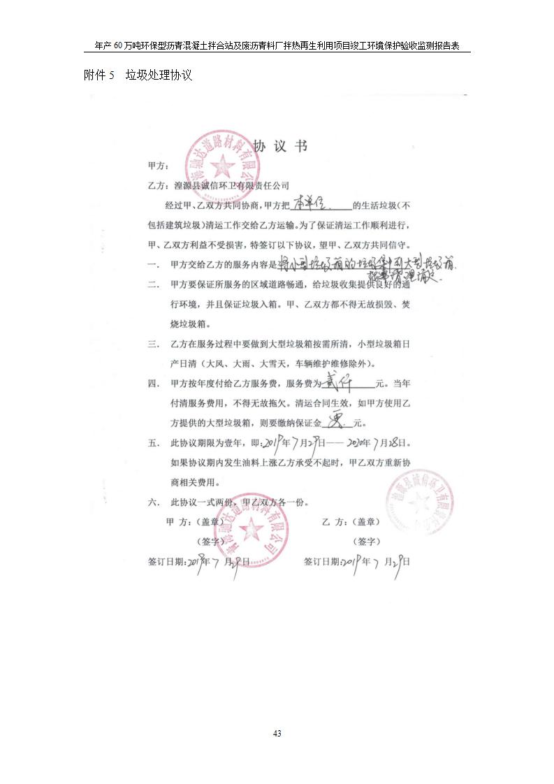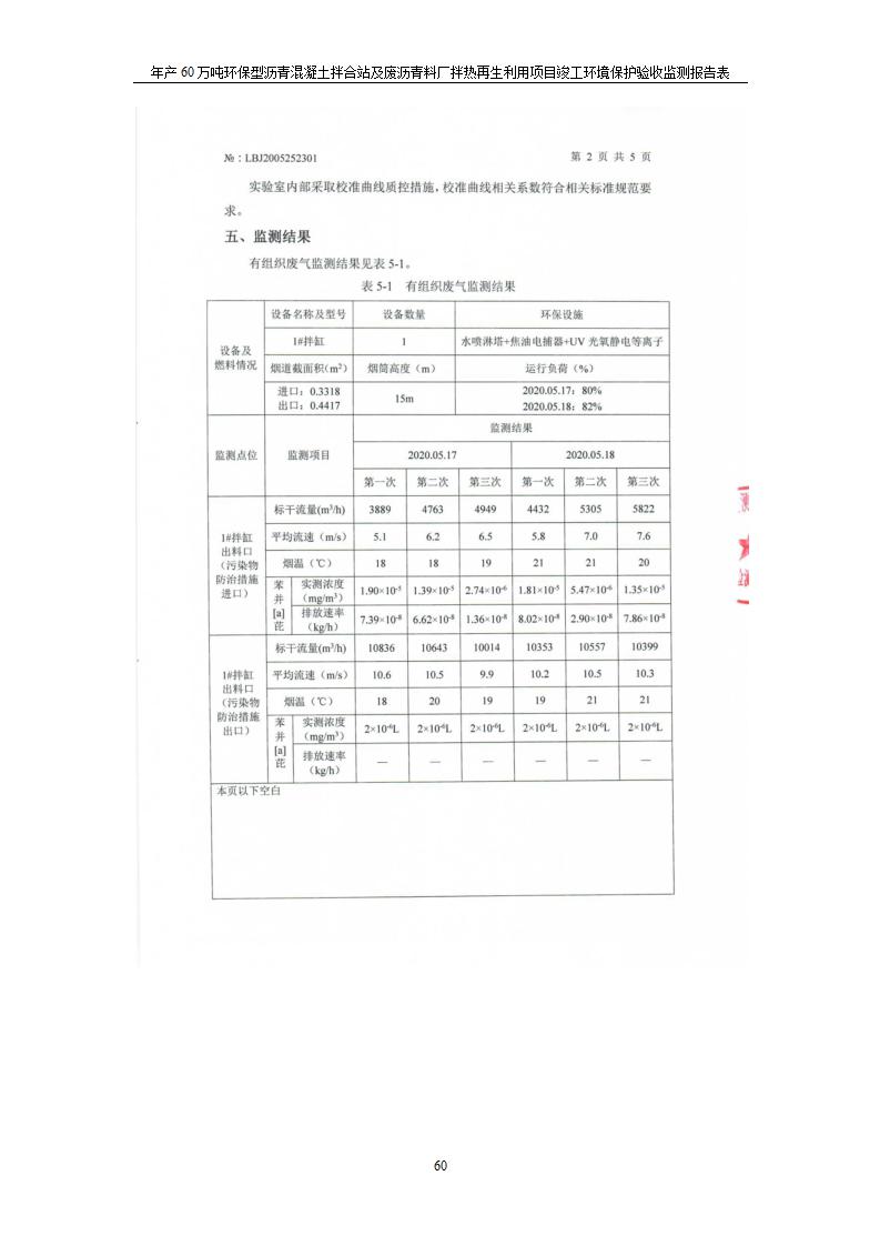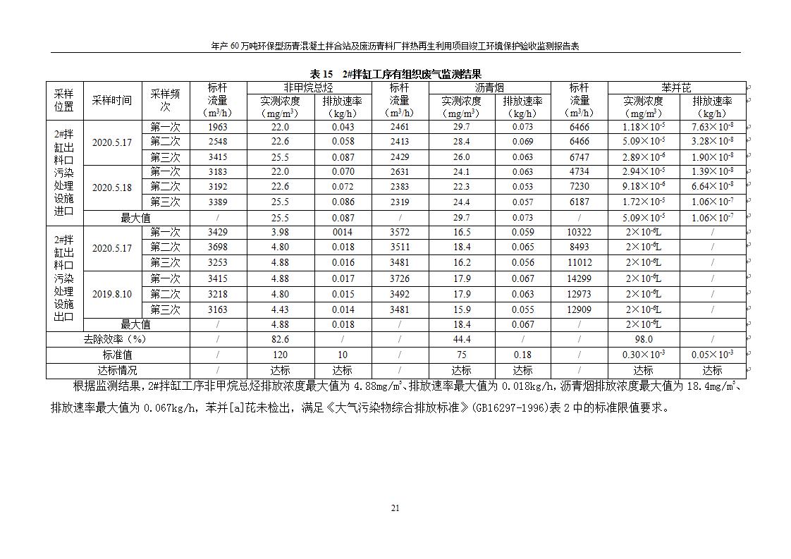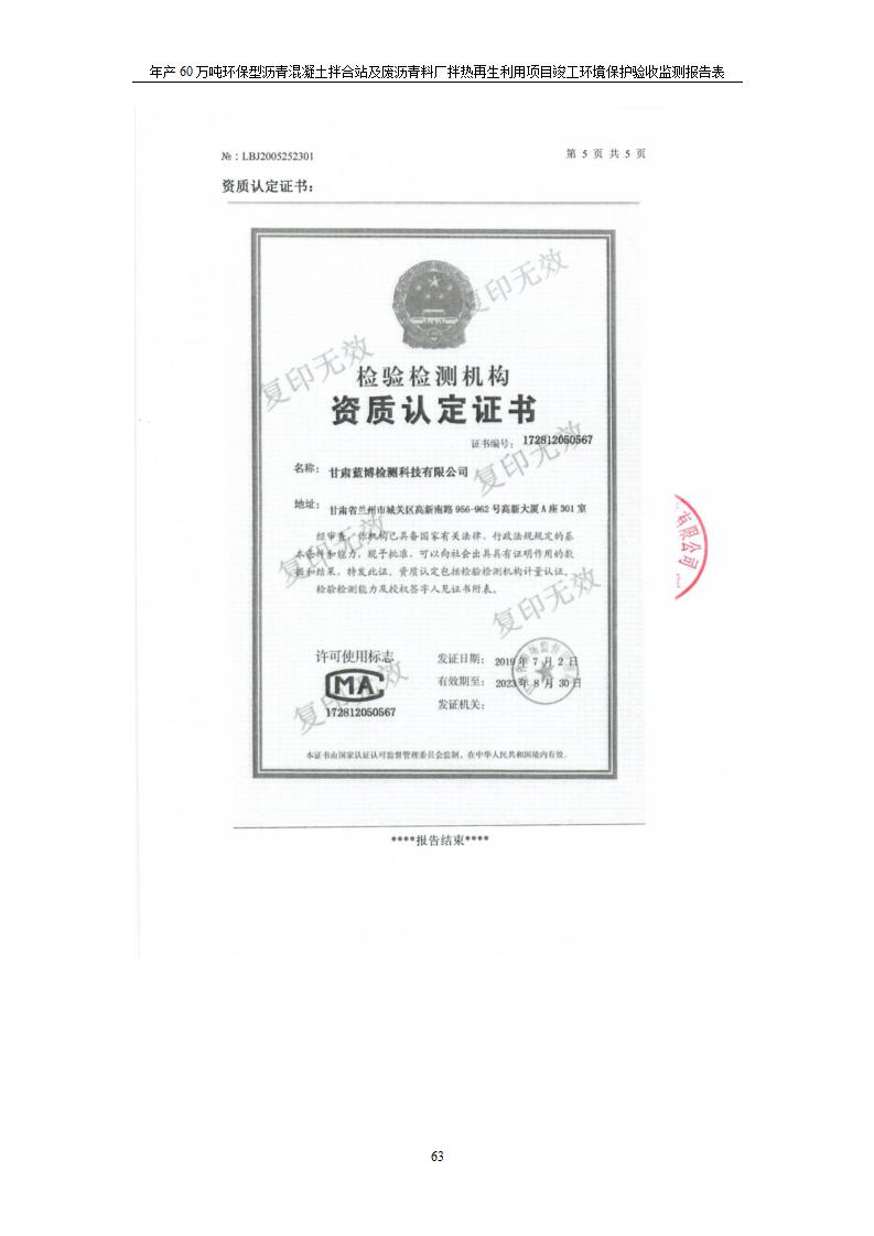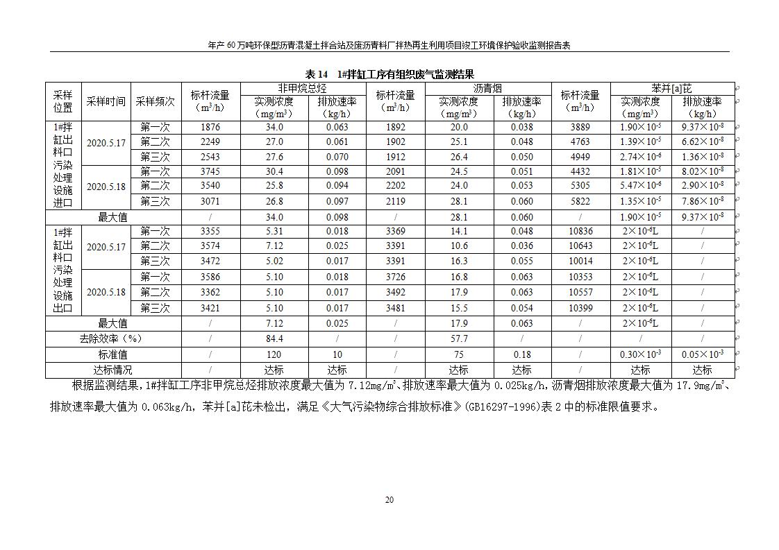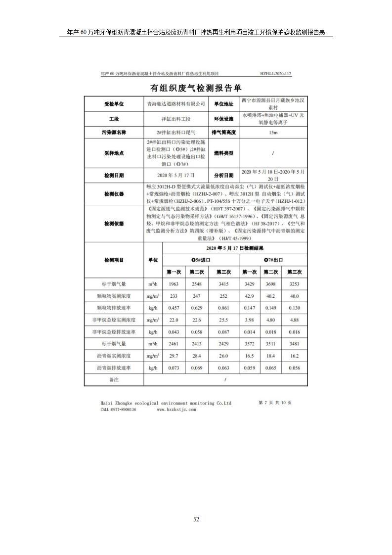 年產(chǎn)60萬(wàn)噸環(huán)保型瀝青混凝土拌合站及廢瀝青料廠拌熱再生利用項(xiàng)目竣工環(huán)境保護(hù)驗(yàn)收監(jiān)測(cè)報(bào)告表公示發(fā)布日期:(2020-7-6) 點(diǎn)擊次數(shù):3833 |
